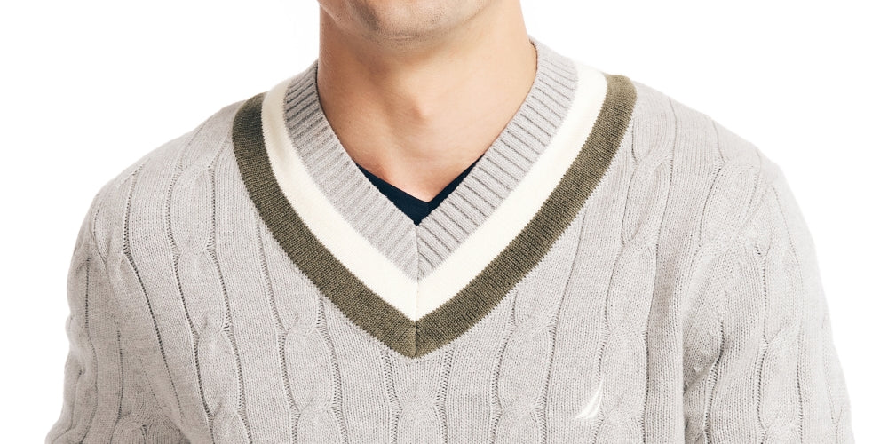 Suéter masculino de críquete universitário com decote em V e tricô trançado Nautica, cinza, tamanho extrapequeno