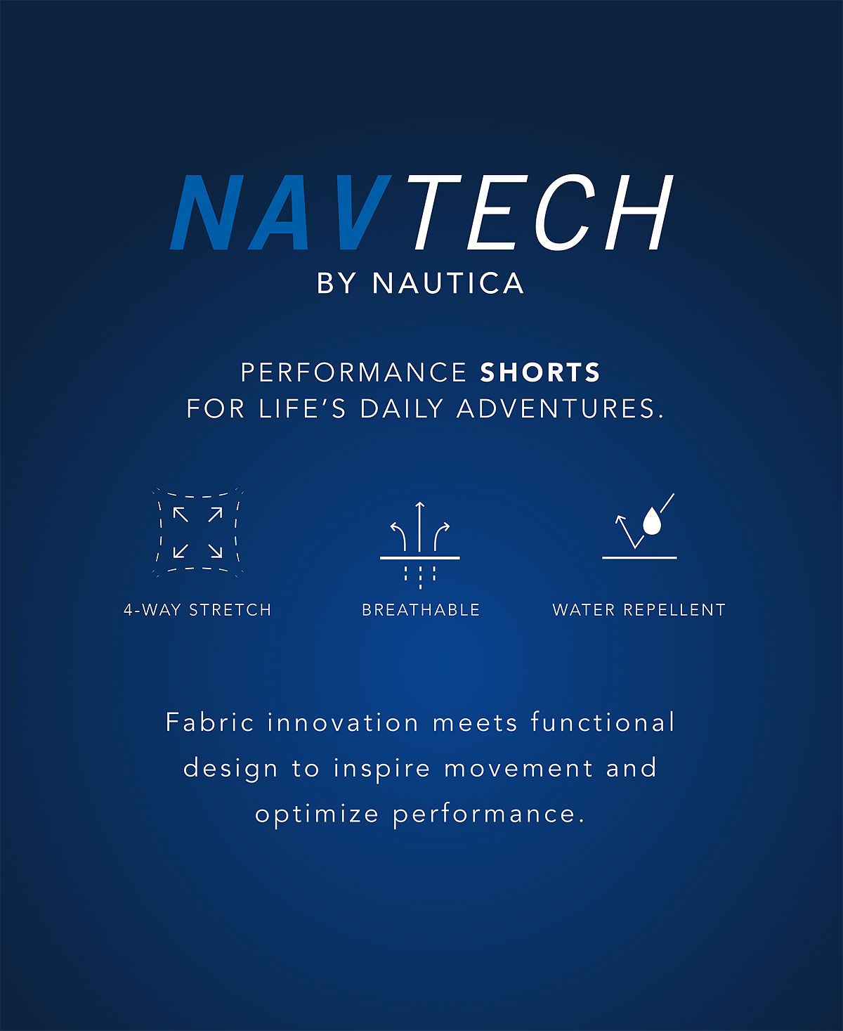 Corte slim | este shorts é feito de tecido respirável | repelente à água para manter você fresco e seco | e possui elasticidade ativa para movimentos flexíveis durante todo o dia. Da coleção Navtech da Nautica | este é o short perfeito para as aventuras diárias da vida. | Costura interna de 8,5 | corte slim
