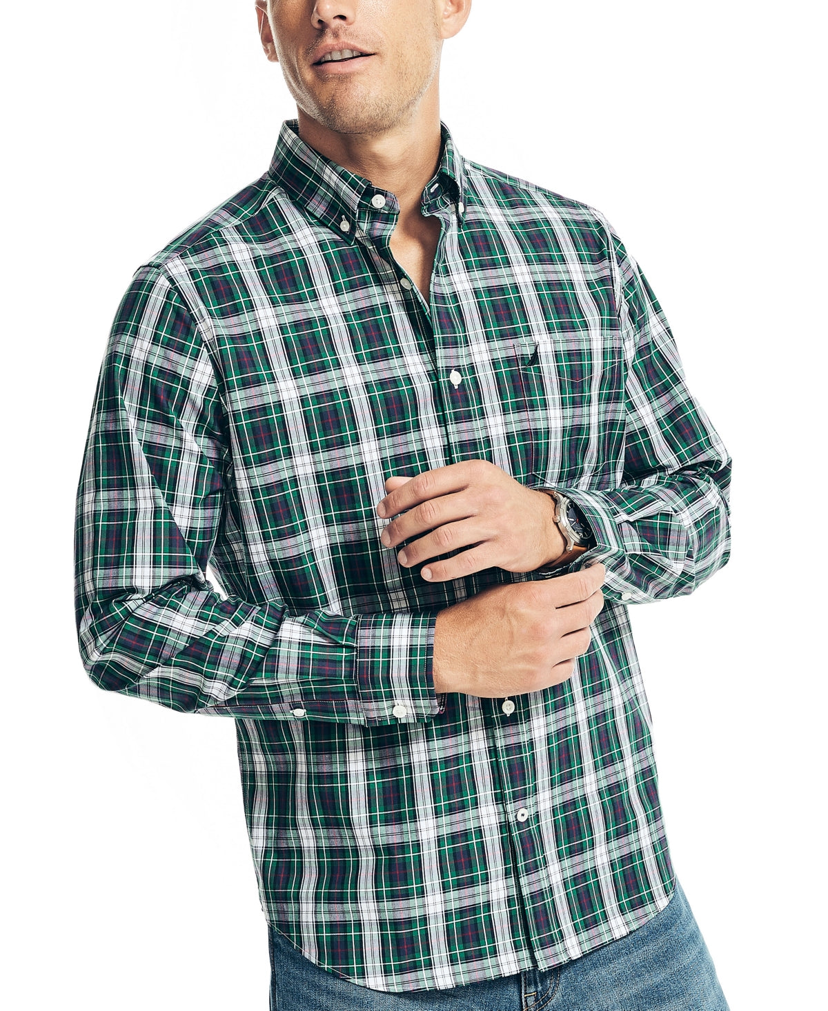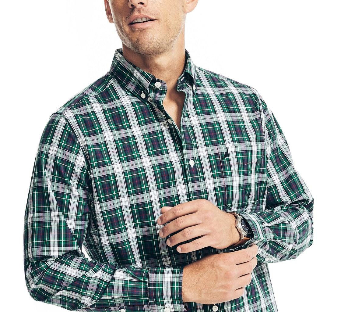 Camisas masculinas Nautica resistentes a rugas para uso no trabalho e nas férias, tamanho médio, verde
