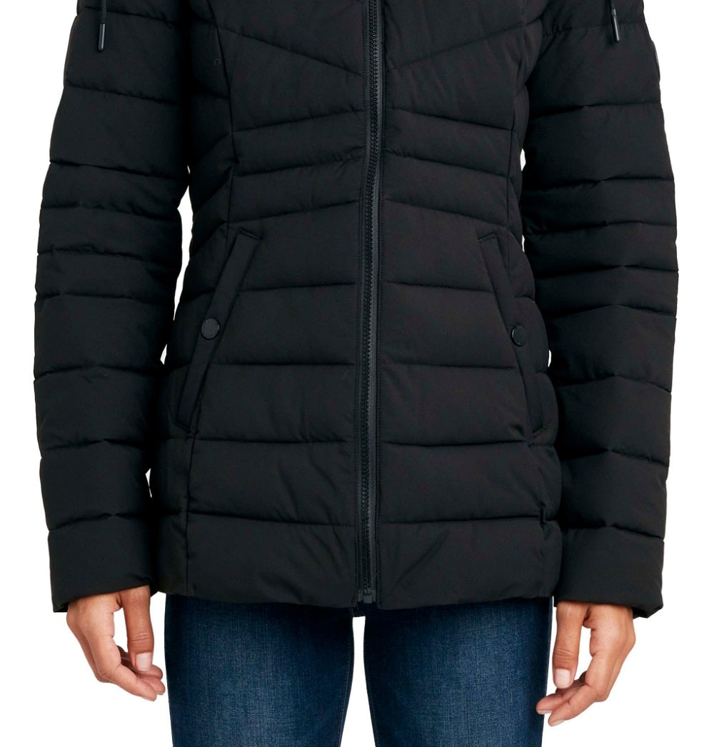 Uma escolha distintamente estilosa da Nautica | este casaco puffer apresenta um capuz aconchegante com acabamento em pele sintética luxuosa e acabamento com uma capa resistente à água