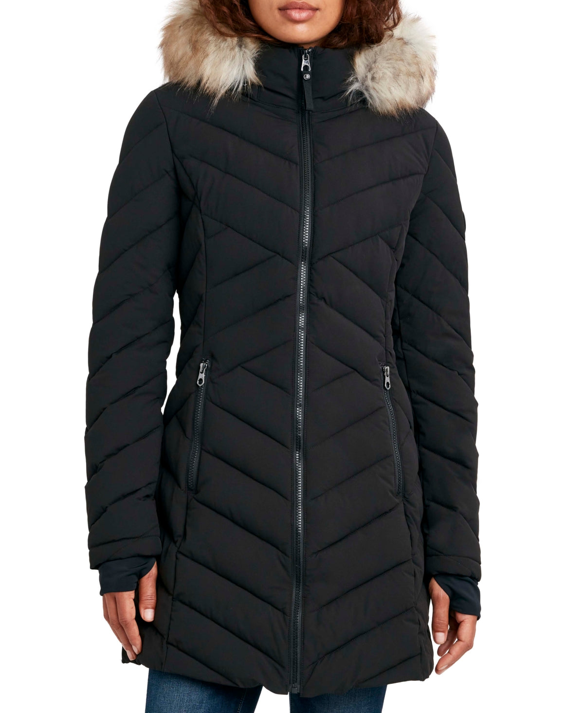 Casaco acolchoado elástico com capuz e acabamento em pele sintética Nautica feminino, preto, tamanho pequeno