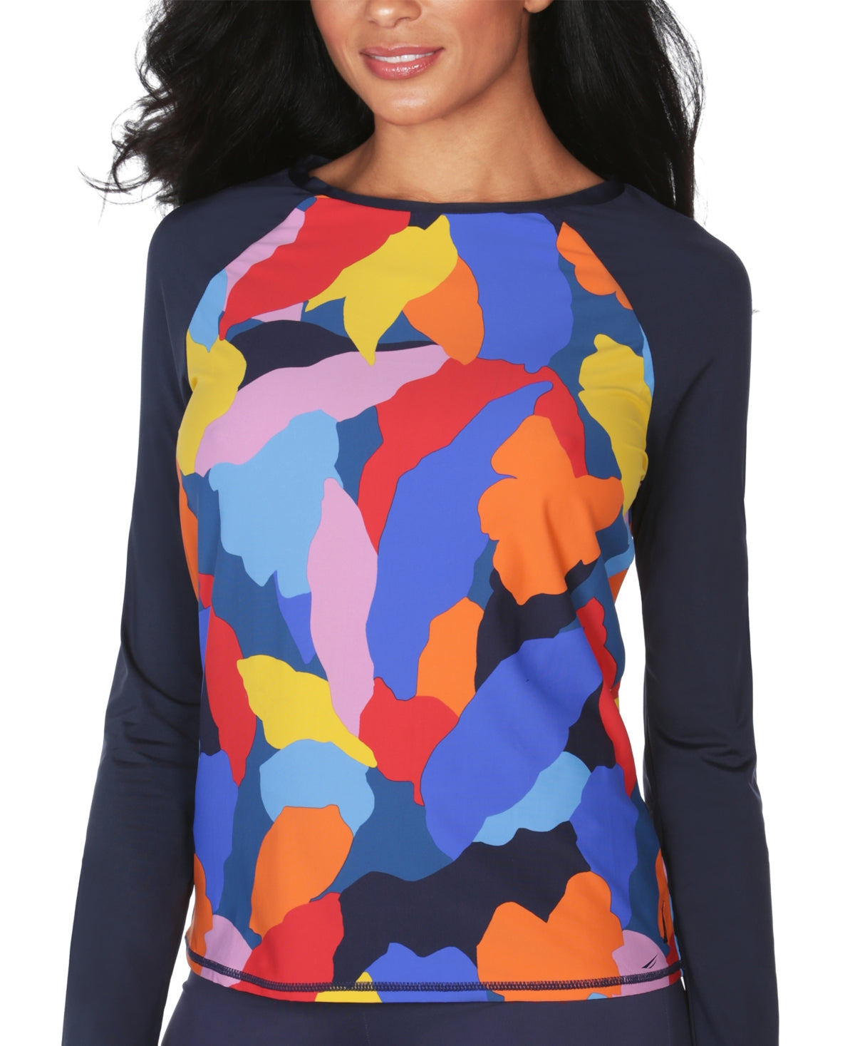 Você receberá muitos elogios com esta rash guard estampada de forma divertida da Nautica | uma escolha de manga comprida projetada com proteção solar UV inteligente
