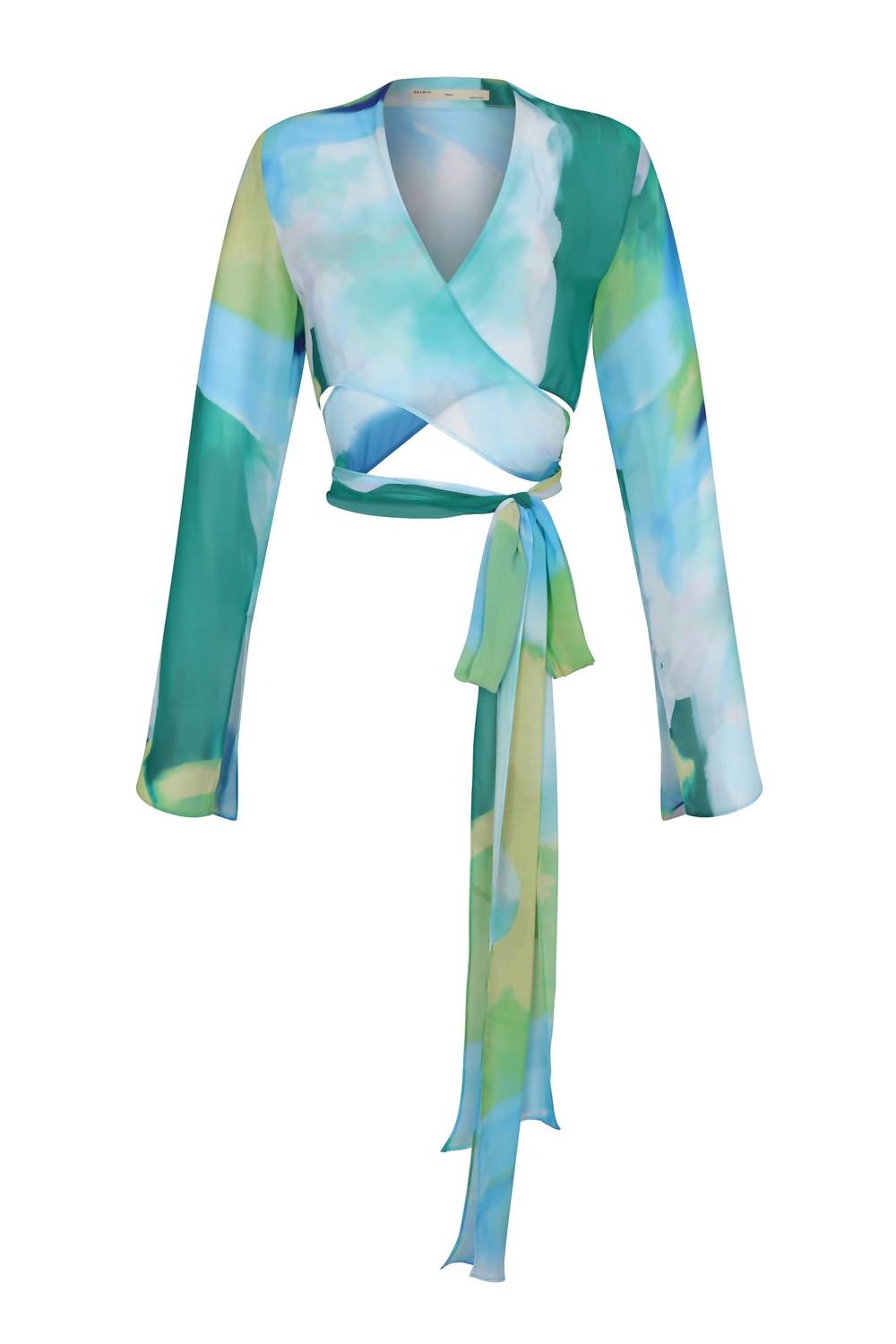 Caimento perfeito, design charmoso, tecido macio. Você vai adorar tudo nesta camiseta de manga comprida. Abrace o estilo descontraído do verão com o Top Ada Sheer com decote em V da Nelblu, um destaque com uma cativante estampa tie-dye Bosco. Este top feminino de manga comprida é perfeito para um dia de praia, com um decote em V chique e um fecho prático de amarrar. Sem bolsos, garante um visual elegante e sem costuras. Confeccionado para ser delicado, evite o contato com protetor solar, óleos e superfícies ásperas para manter sua condição impecável.
