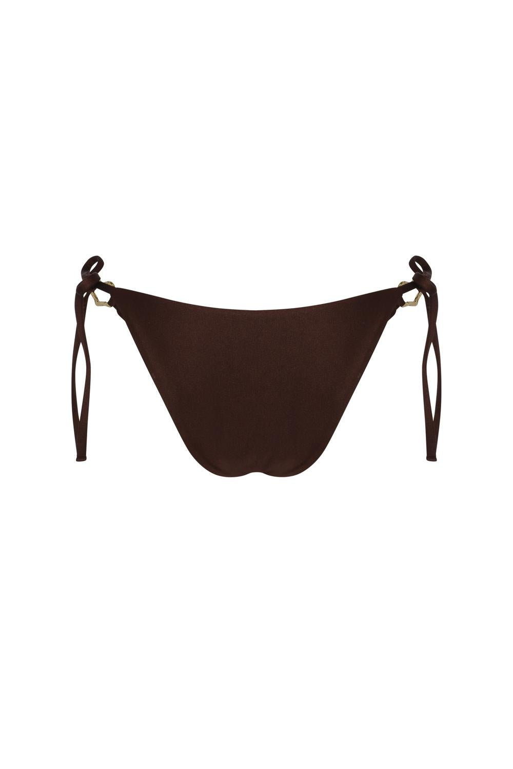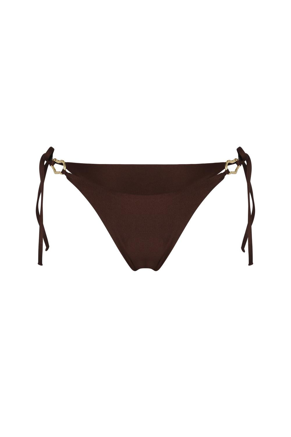 Sonhe com sua próxima escapada para a praia com esta peça fofa. Combine com sandálias de tiras, um chapéu flexível e uma bolsa grande para completar o look de férias perfeito. Apresentamos a Calcinha de Biquíni Nelblu Petalo com Amarração Lateral Cheeky em um tom chocolate intenso, perfeita para um dia de praia cheio de estilo. Este biquíni fio dental de cintura baixa apresenta elegantes ferragens douradas em formato orgânico em ambos os lados, oferecendo um toque sofisticado. O país de origem não é especificado. Para manter sua qualidade, enxágue imediatamente após contato com protetor solar, óleos ou cloro, evite amaciantes e não seque na secadora, use alvejante ou passe a ferro.