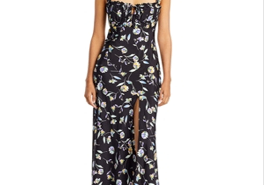 Vestido longo feminino Nicholas Nina com decote quadrado e estampa floral, tamanho médio