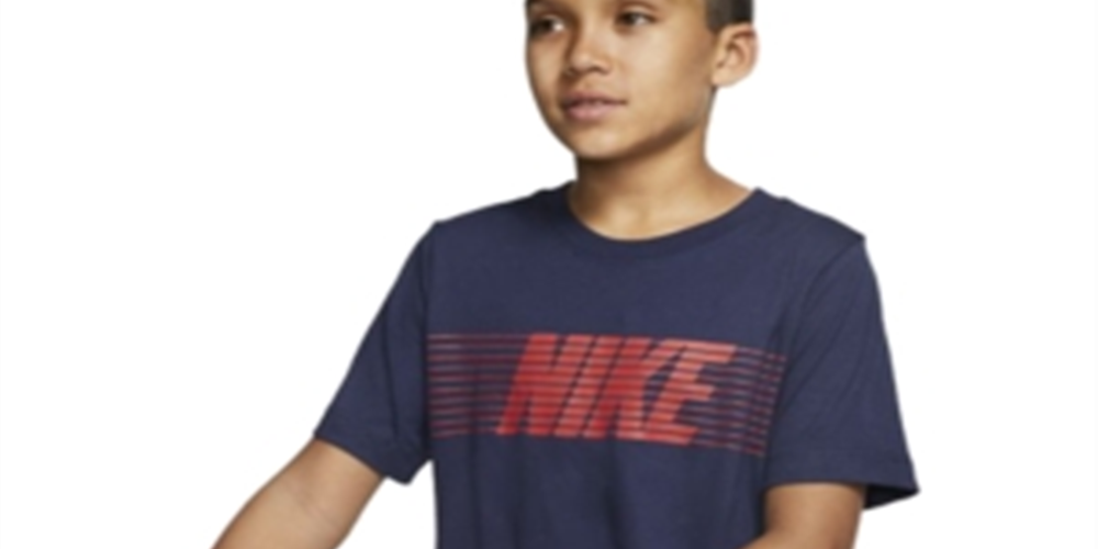 Camiseta de algodão com estampa do logotipo Nike Big Boy's, azul, tamanho grande