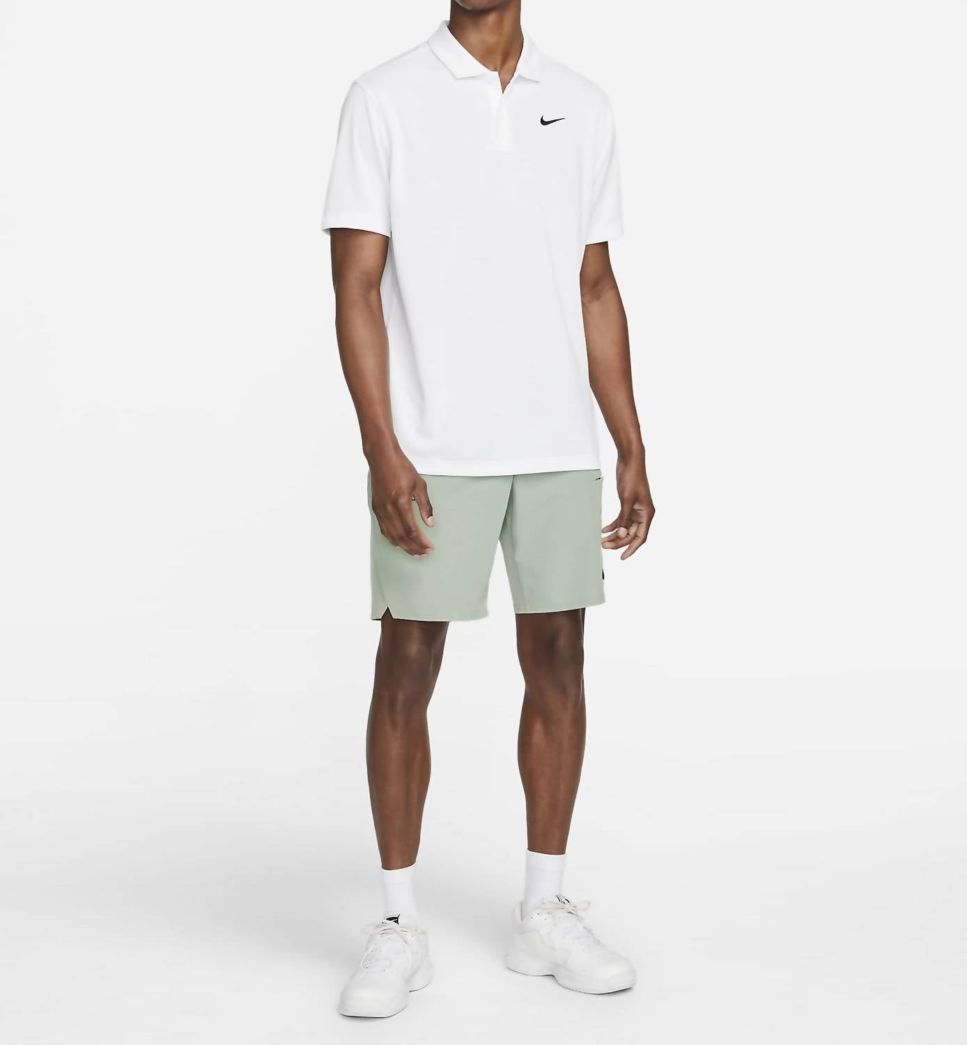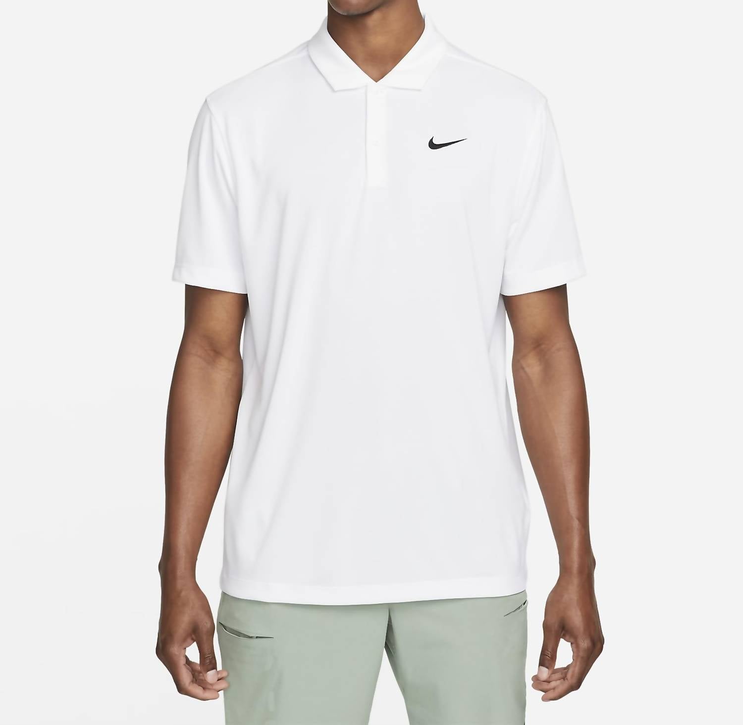 Elevate your tennis game with the Nike Court Dri Fit Solid Tennis Polo Shirt in crisp white. This women's polo features short sleeves and a fold-over collar with a 2-button placket for a classic look. Made from 100% polyester, it offers breathable performance and UVA/UVB protection in covered areas. Closure: Pull On. Care: Machine wash and tumble dry.