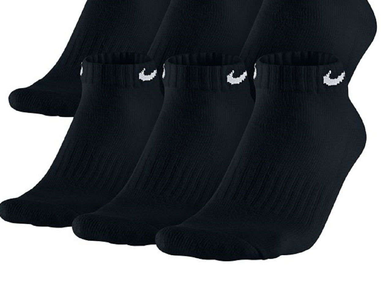 Pacote com 6 meias Nike masculinas de algodão de cano baixo, pretas, tamanho grande