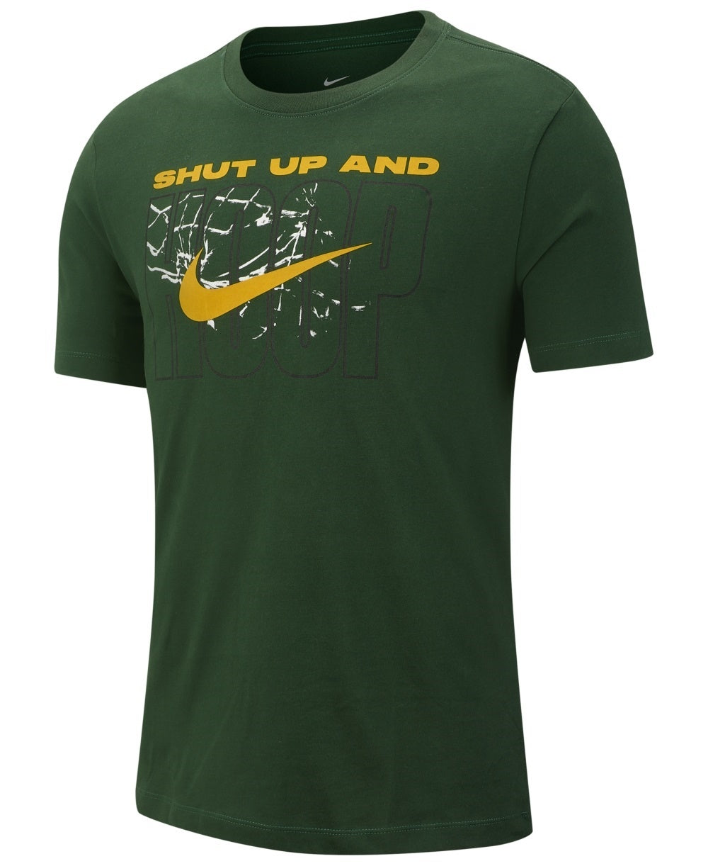 Ajuste padrão | Gola redonda | Estampa frontal | Tecnologia de absorção Dri-FIT que ajuda a evaporar a umidade | Algodão/poliéster | Lavável à máquina