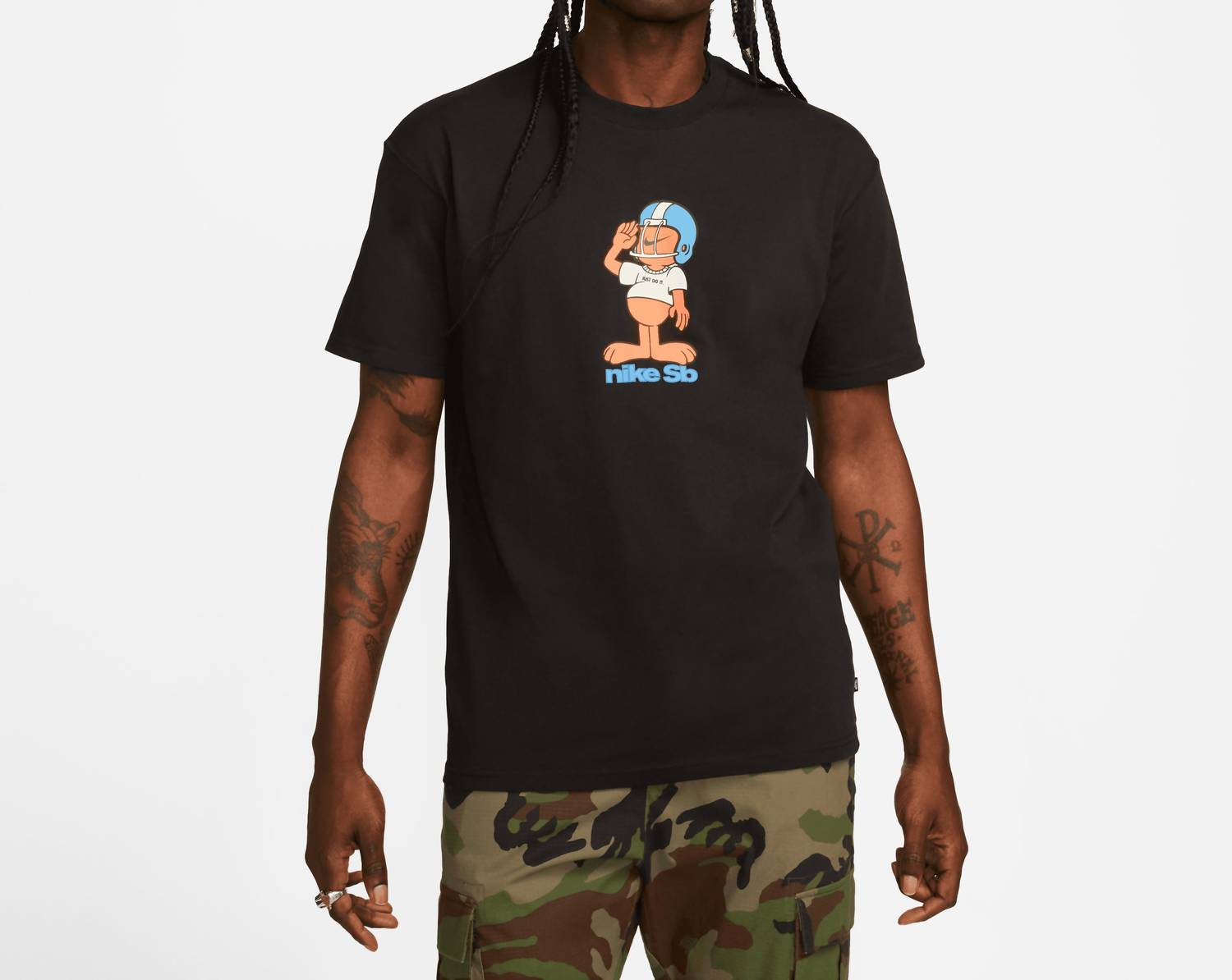 Eleve seu estilo de skate com a camiseta masculina SB Salute da Nike, projetada para conforto dentro e fora do skate. Esta camiseta de manga curta é feita de uma mistura de algodão flexível, garantindo maciez e durabilidade, com uma estampa estilosa que se destaca no tecido preto. Esta camiseta possui um fecho prático e é fácil de limpar, seguindo as instruções de lavagem à máquina. Ideal para entusiastas de roupas esportivas, sua construção de peso médio e caimento amplo a tornam uma adição versátil a qualquer guarda-roupa.