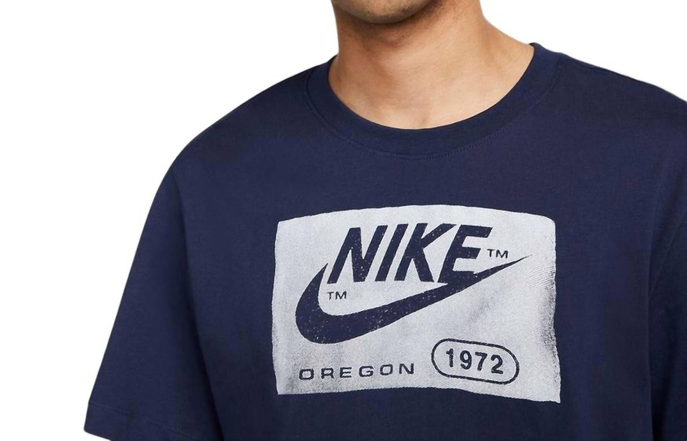 Caimento clássico, folgado no corpo e nos quadris. Versão ampliada e estampada da etiqueta da língua dos primeiros tênis de corrida Cortez. 50-100% algodão, 0-50% poliéster. Lavagem à máquina.