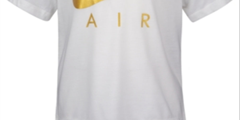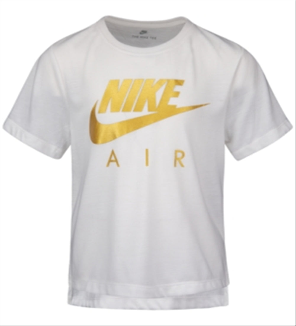 Aumente a diversão com a estilosa camiseta de gola redonda da com um logotipo Air metálico brilhante e uma linda bainha alta e baixa.