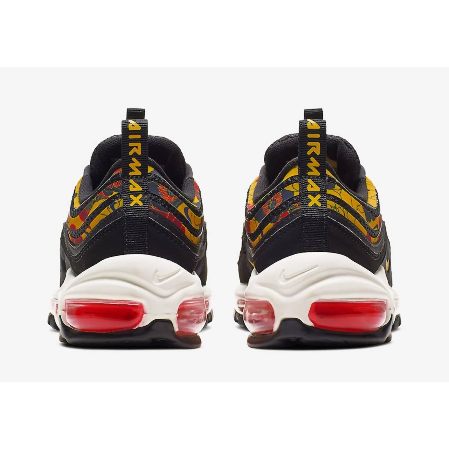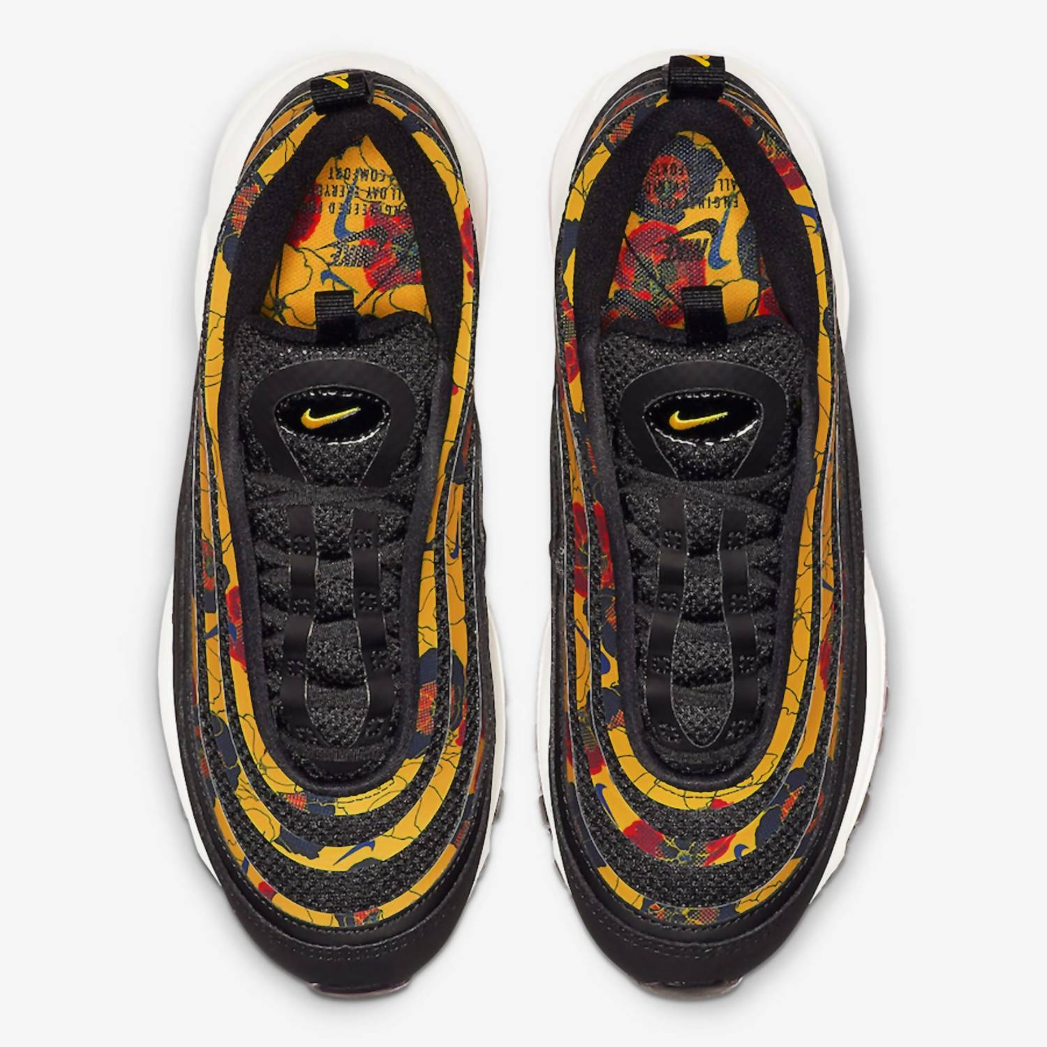 O cabedal conta com motivo de rosas. O material nobuck preto suave envolve o para-lama do modelo e funciona como uma base discreta para destacar o padrão. Painéis em nobuck preto contrastam com o design floral, enquanto um Swoosh amarelo ousado acima da entressola confere um estilo fiel ao Air Max 97 original. O sistema de amortecimento Max Air em toda a extensão proporciona uma passada ultraconfortável e responsiva.