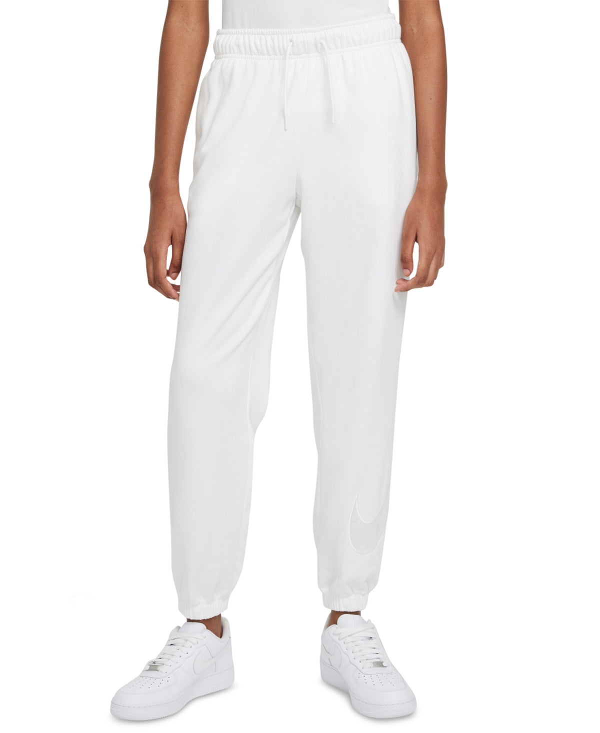 Um logotipo iridescente e macio confere um toque esportivo a esta calça de moletom. O moletom francês macio oferece conforto no dia a dia. | Costura interna aprox.; 28 | Moletom francês | Cós elástico com cordão; bolsos frontais; logotipo em veludo amassado à esquerda; punhos elásticos | Algodão/rayon/poliéster; bolsos laterais; algodão/rayon | Lavável à máquina