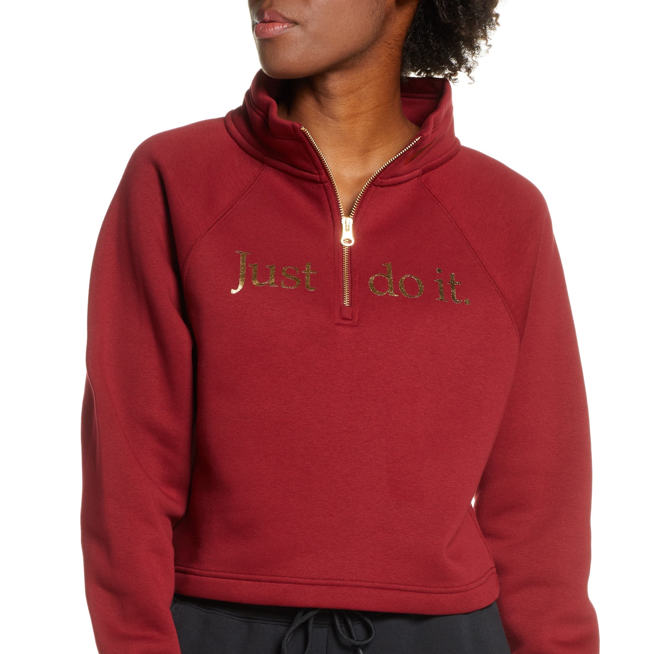 Mantenha-se confortável e estilosa com este look da Sportswear | um top curto de fleece com decote funil chique e fecho de meio zíper que permite variar. | Caimento relaxado | INSPIRADO PARA; Athleisure | Fleece escovado nas costas | Decote funil; fecho de meio zíper na frente; Just Do It metálico na frente
