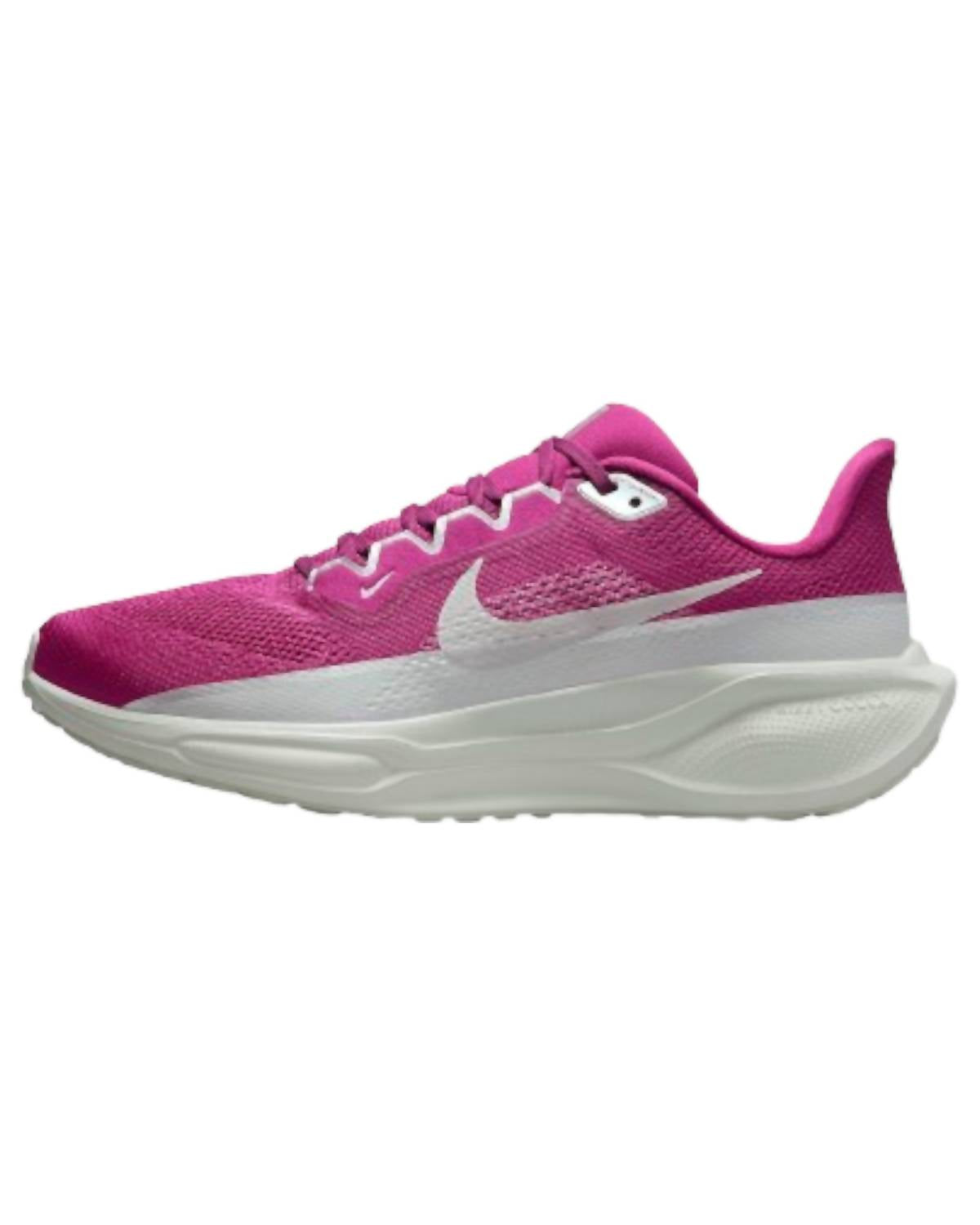 Apresentamos o Tênis de Corrida Feminino Nike Pegasus 41 PRM na deslumbrante cor 500. Projetado para o uso diário, este tênis oferece amortecimento responsivo por meio de um cabedal em mesh respirável e uma entressola de espuma ReactX complementada por duas unidades Air Zoom. Os materiais incluem um cabedal têxtil e sintético, entressola de espuma ReactX e um solado de borracha. Instruções de cuidado: limpe com uma solução suave e uma escova macia e seque ao ar livre em temperatura ambiente. Perfeito para mulheres que buscam um salto plano de largura média com bico arredondado.