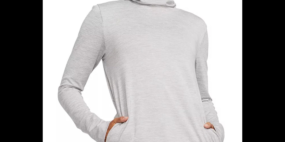 O decote funil aumenta a cobertura | INSPIRADO PARA: Ioga | A tecnologia de absorção Dri-FIT ajuda a evaporar a umidade | Decote funil; logotipo na frente; cordão na bainha | Poliéster/elastano | Lavável à máquina