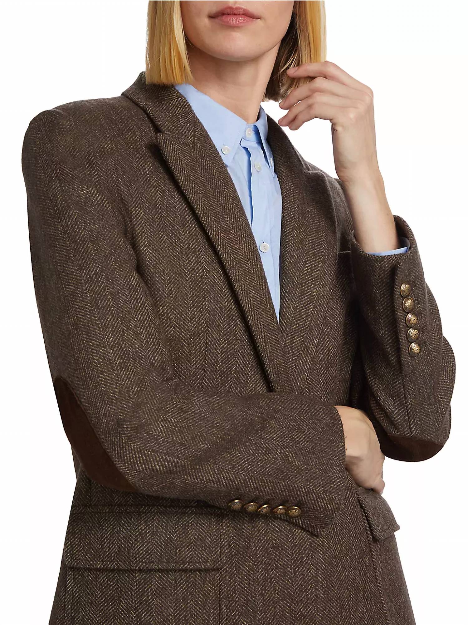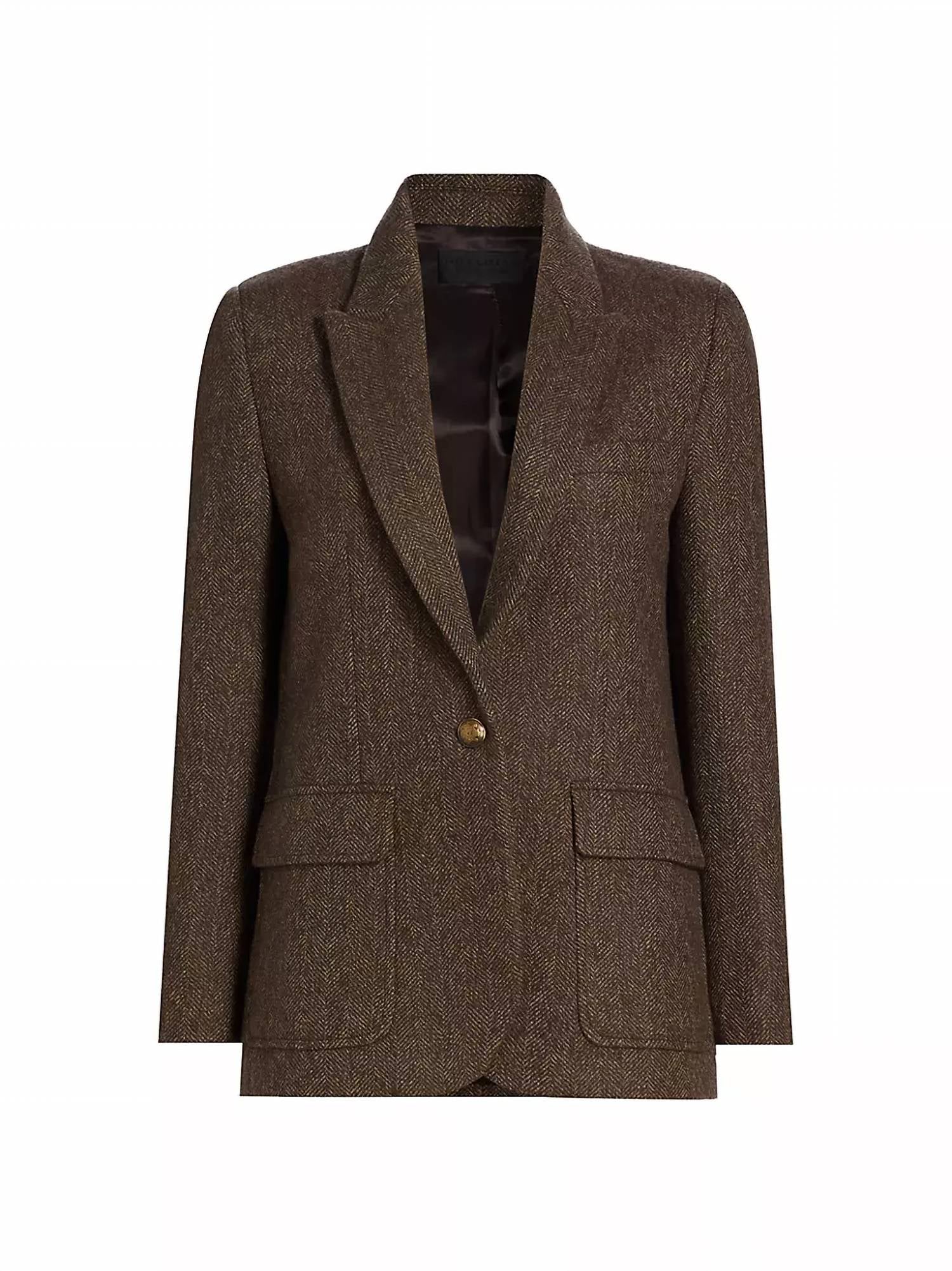 Feito sob medida para a perfeição, este blazer será sua jaqueta favorita por muitos anos. Este Blazer Mireille é confeccionado em 100% lã virgem, com estampa clássica em espinha de peixe, mangas compridas e lapelas pontudas. Possui fecho de um botão e bolsos laterais com aba.