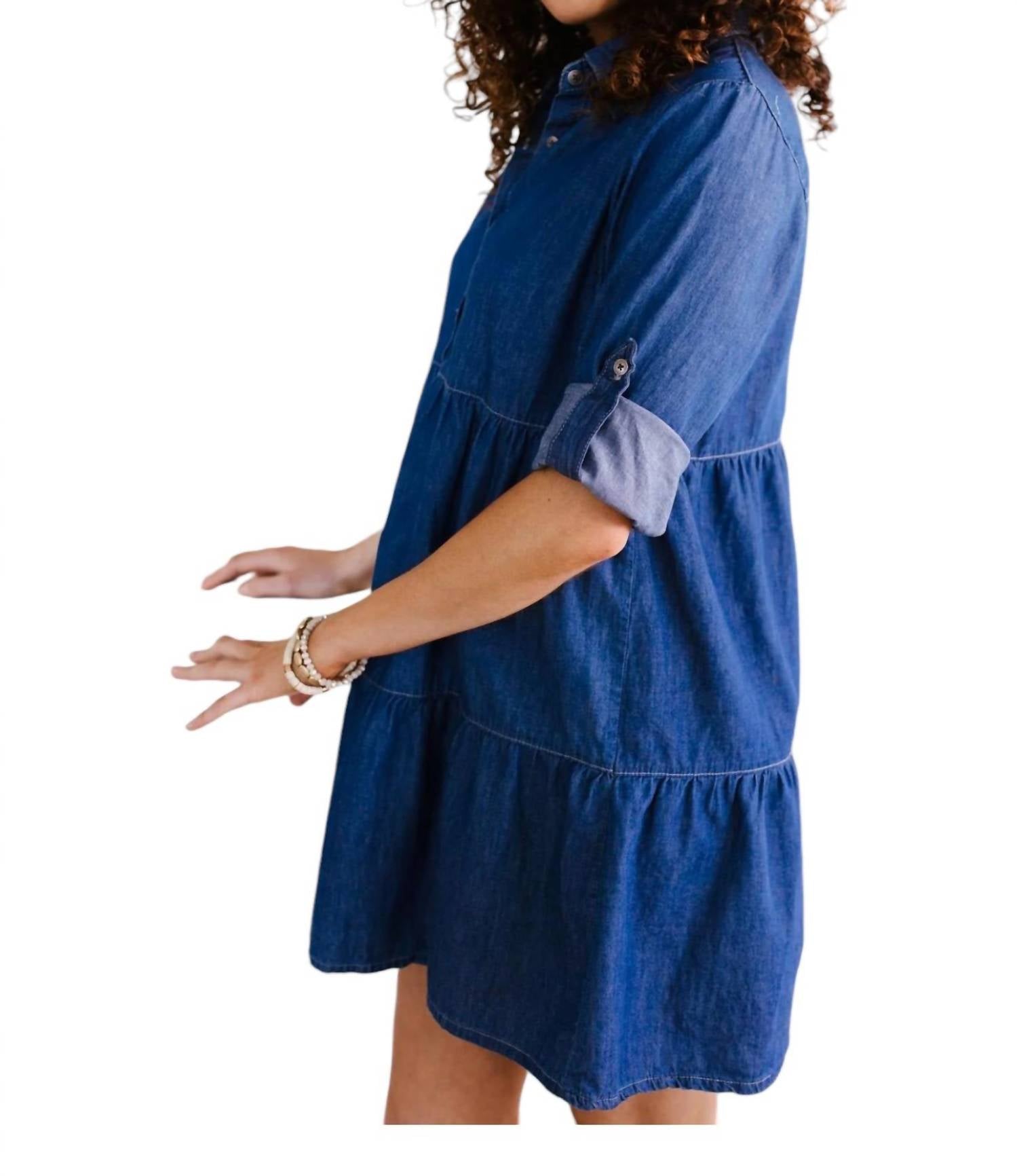 Um vestido curto e arejado para os dias mais quentes. Botões funcionais. Manga com aba dobrada. Leve. Saia em camadas. Tamanho real. 100% algodão. Lavar com água fria e pendurar para secar.