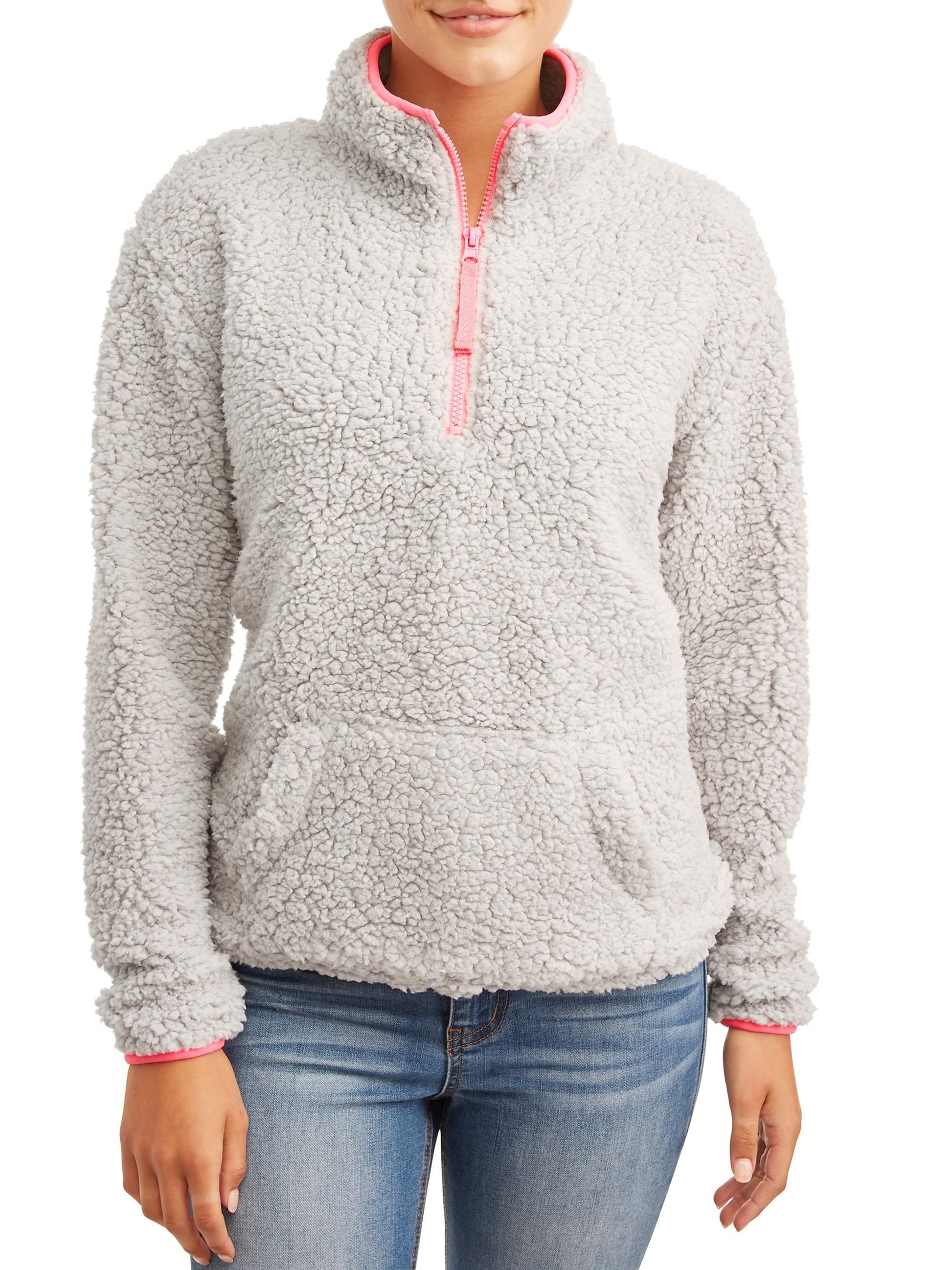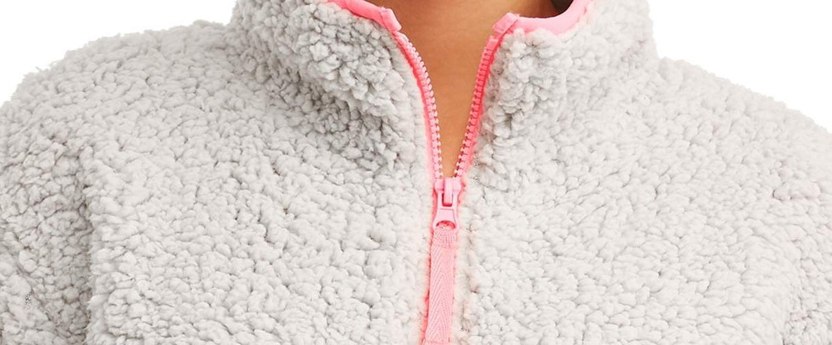 Suéter Sherpa No Boundaries Juniors com zíper de um quarto, cinza, tamanho pequeno