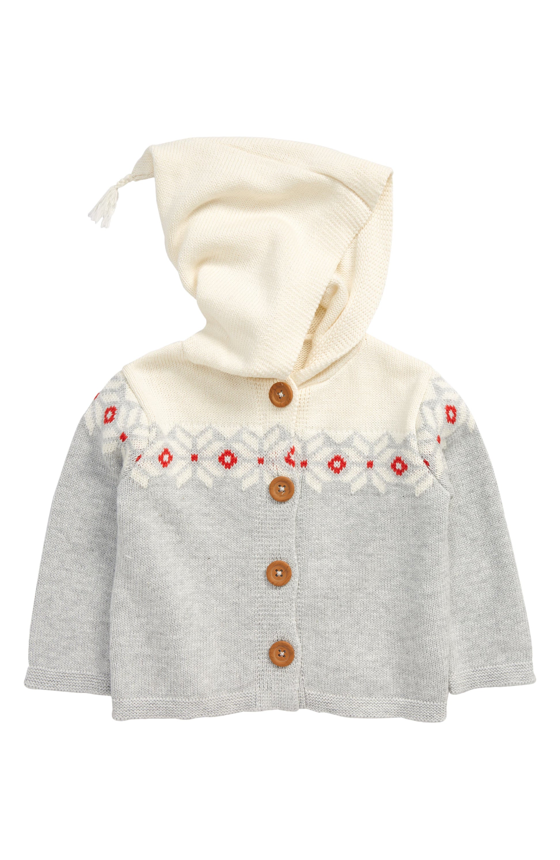 Cardigan com capuz e estampa mesclada cinza claro para bebês da Nordstrom, tamanho 9 meses