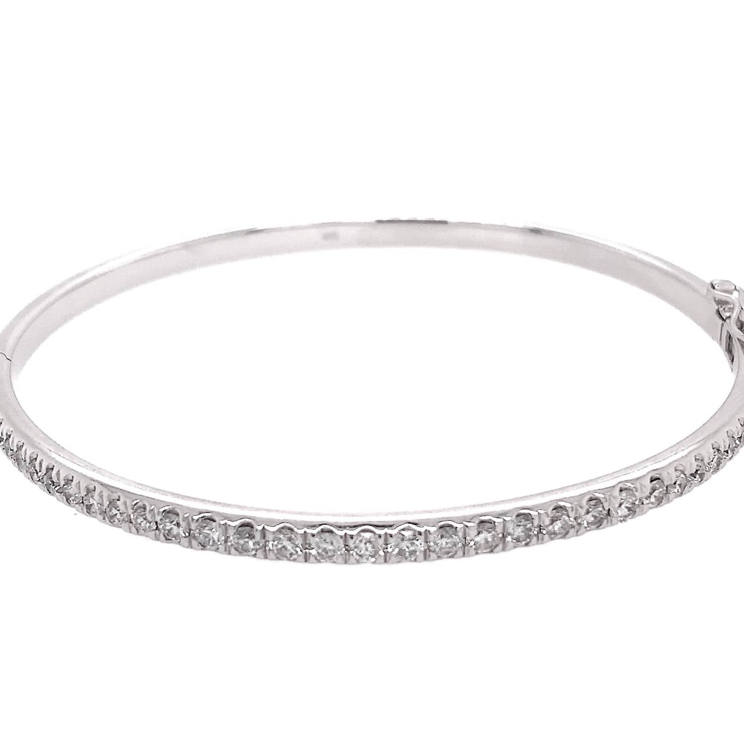 Elevate your elegance with the Women's Diamond Bangle Bracelet by Normani, a fine jewelry piece crafted from 14-karat white gold with 2.45 carats of natural round brilliant diamonds. The stunning D-F colorless diamonds add a touch of sophistication, making it perfect for any occasion. Material: Diamond. Stone Origin: Natural. This luxurious bracelet is the epitome of refined style and grace.