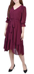 Vestido feminino NY Collection com manga 3/4, decote em V e babados, tamanho pequeno e grande, vermelho