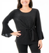 Blusa feminina NY Collection com decote redondo e manga sino, preta, tamanho pequeno