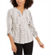 Ask a question about Blusa feminina NY Collection com estampa de mangas bufantes e botões frontais, cinza, tamanho pequeno XS