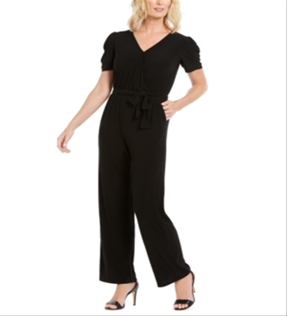 Macacão feminino NY Collection com manga bufante, preto, tamanho pequeno XS