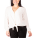Blusa feminina NY Collection com zíper frontal e amarração na bainha, branca, tamanho pequeno, extragrande