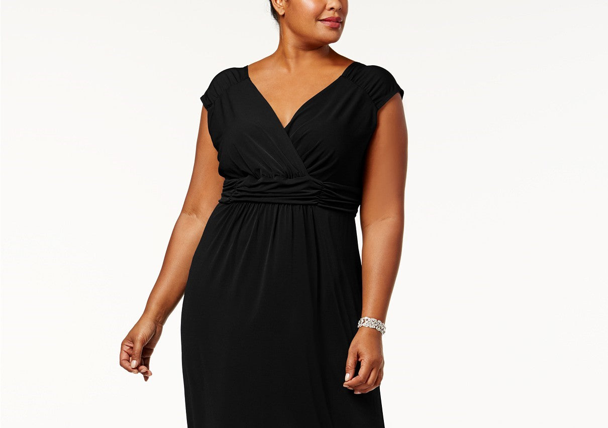 Vestido longo franzido estilo império plus size da coleção feminina NY, preto, tamanho 2, extra grande
