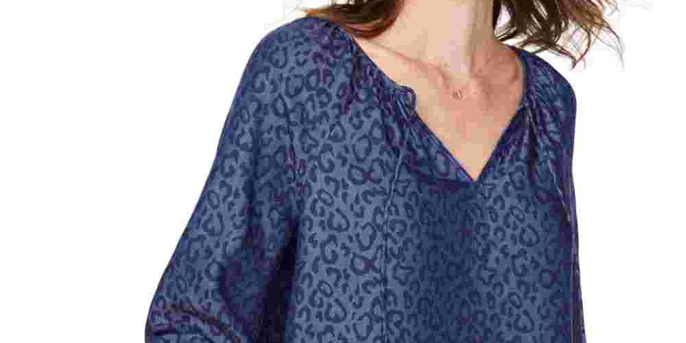 Blusa Camponesa Feminina NYDJ Chambray Azul Gato Tamanho X-G