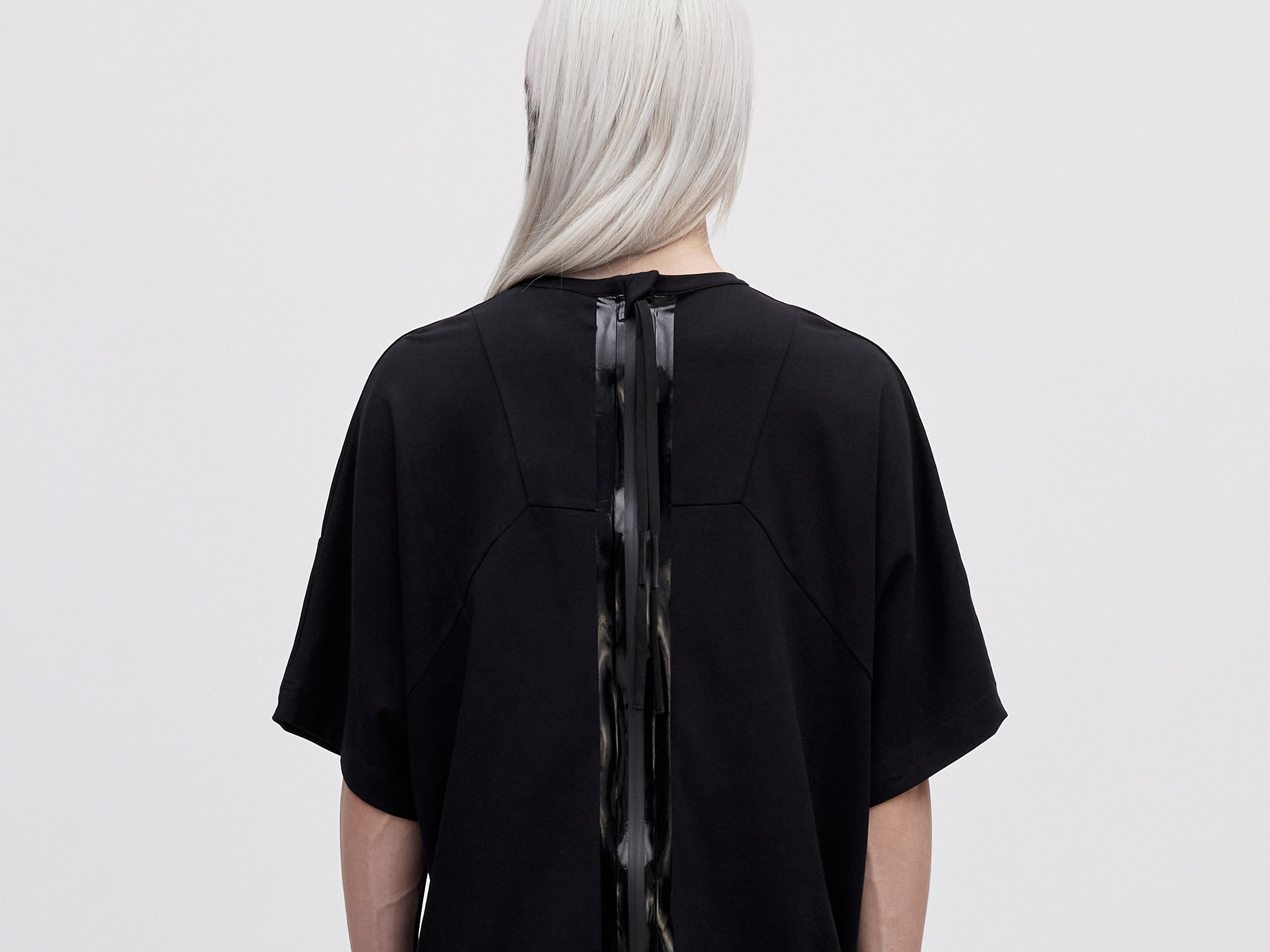 Cut from Italian organic cotton, this super soft tee places the design emphasis on the back with a full length taped zip. The epic oversized silhouette features shock cords in the hem so that you can dial in your perfect fit for endless styling options.