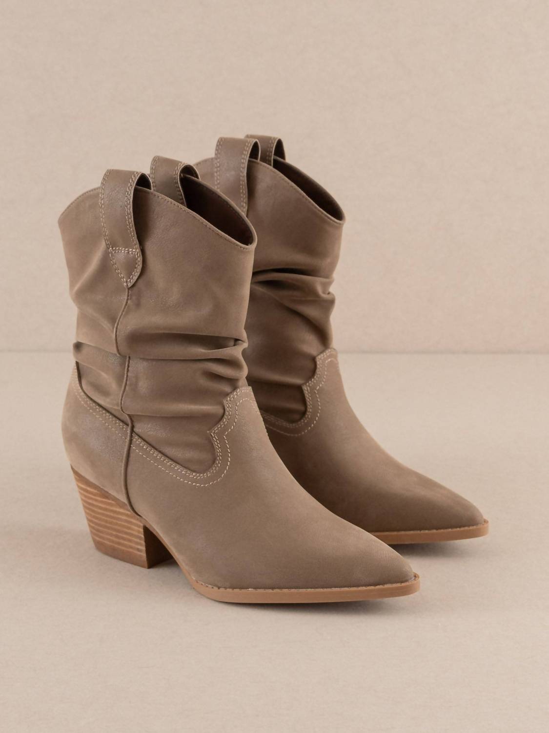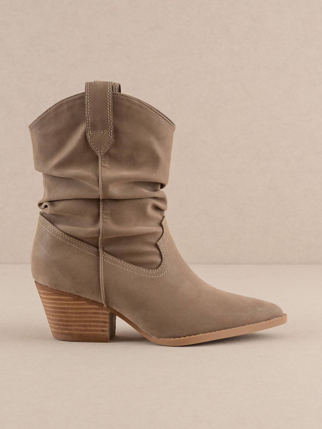 Saia com confiança e mostre seu gosto impecável com estas botas versáteis e estilosas. Seu estilo clássico fará você recorrer a elas estação após estação. Eleve sua coleção de calçados com a bota feminina Kit Slouchy Western da OASIS SOCIETY, que oferece estilo e conforto em um tom taupe escuro. Confeccionada com cabedal em couro vegano e palmilha acolchoada DreamCloud, esta bota foi projetada para uso diário com um bico fino e elegante. O salto bloco mede 5 cm, proporcionando um salto firme e elegante, enquanto o fecho slip-on garante facilidade no calce. Com cano de 21 cm de altura e 34 cm de circunferência, esta bota complementa perfeitamente qualquer look.