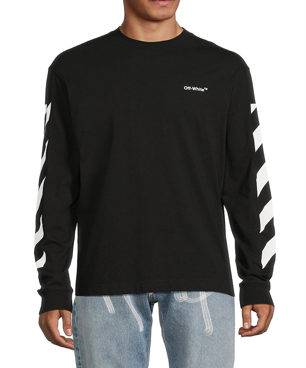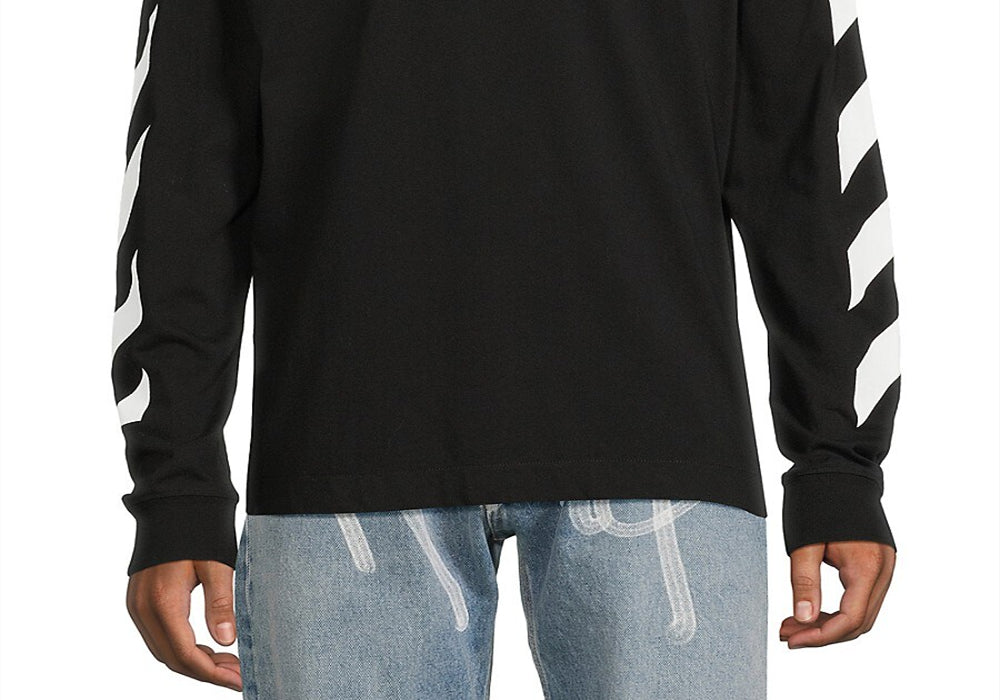 Gola redonda Mangas compridas Gola canelada | punhos e bainha Pulôver Algodão Lavagem à máquina Fabricado em Portugal TAMANHO E AJUSTE Cerca de 27|5 do ombro à bainha| Masculino - M Roupas esportivas de grife > Saks Off 5th| Off-White| Cor; Preto Branco| Tamanho; M
