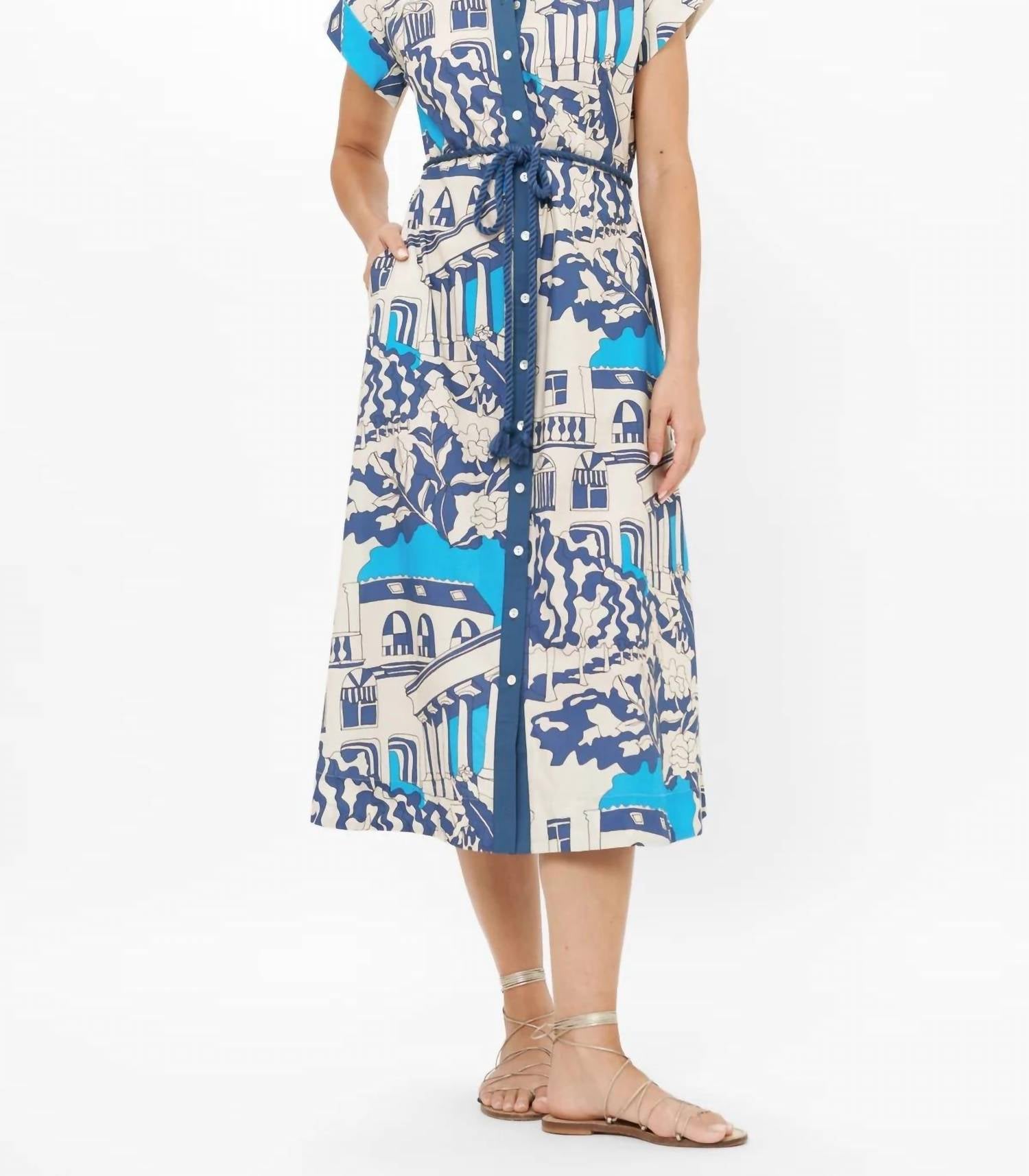 Just add slides or mules and you are good to go. Enhance your wardrobe with the Oliphant Cap Sleeve Shirt Midi Dress, a stylish piece perfect for any summer occasion. This A-line dress, in a striking Roma Blue, features short cap sleeves and is crafted from 100% cotton for breathable comfort. Equipped with convenient hidden pockets and a matching belt, it boasts mother of pearl button closures, adding elegance to its design. For best care, hand wash inside out and hang or lay flat to dry.