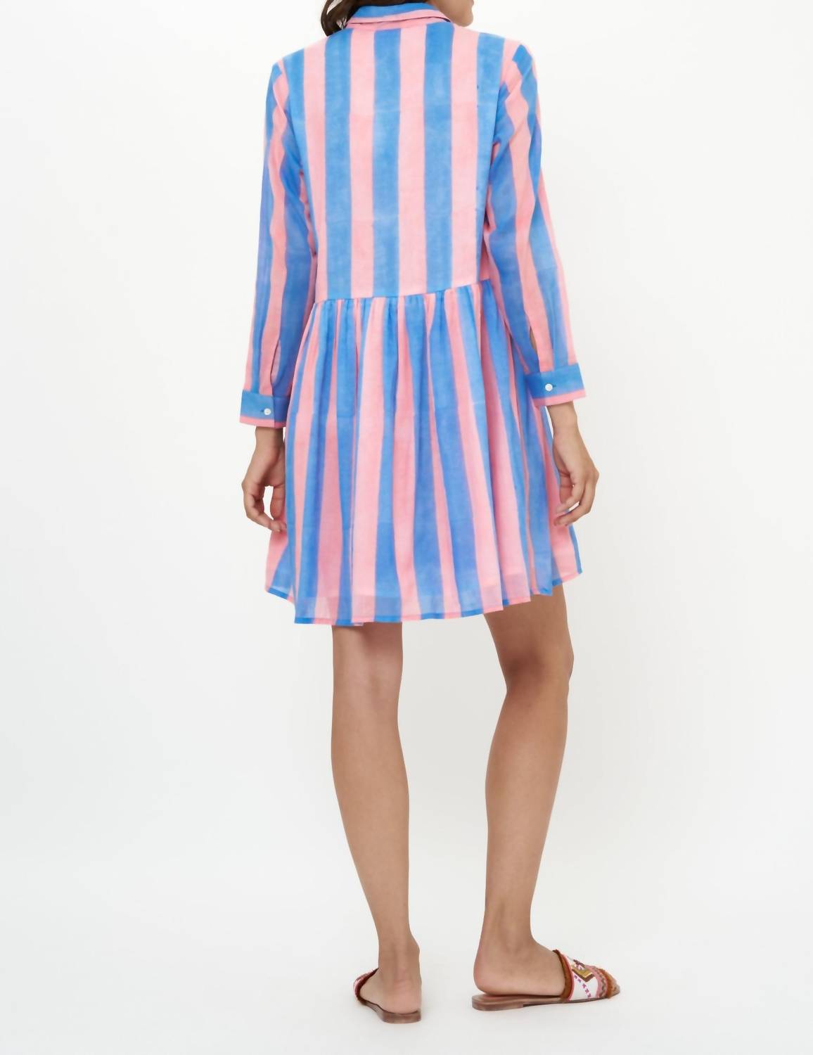 The kind of easy and flattering dress you'll be reaching for all season long. Embrace the blend of style and comfort with the Long Sleeve Shirt Mini Dress from Oliphant. Featuring three-quarter sleeves and crafted from 100% Cotton Voile, this mini-length dress showcases a striking all-over hand block printed pattern in Cabana Pink. Originating from a relaxed fit silhouette, it closes with a button closure adorned with Mother of Pearl buttons and includes a convenient patch pocket. Maintain its vibrant look with cold hand washing and line drying.