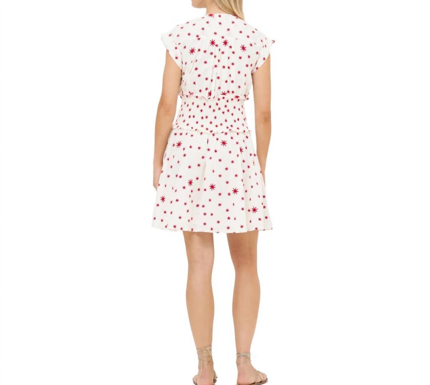 A short and breezy dress for those warmer days. Elevate your ensemble with the Smocked Waist Roll Sleeve Mini Dress by Oliphant in a captivating Ellsworth Red. This women's dress features cap sleeves and a flattering smocked waist that beautifully complements its A-line silhouette, offering an effortless pull-on closure. Crafted from high-quality cotton, this patterned piece is ideal for summer occasions like Thanksgiving or holiday parties. Care: Hand wash and lay flat to dry, ensuring the vibrant color and design remain impeccable.