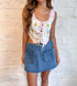 Elevate your spring wardrobe with the Flower Fields Top by Olivaceous, designed for stylish garden-party vibes. This sleeveless blouse, crafted from a 50% linen and 50% cotton blend, features a floral pattern that captures the essence of blooming meadows. Its squareneck silhouette is accented by a tie closure, creating an enchanting boho chic look perfect for vacations or casual outings. For care, hand wash in mild detergent and line dry, using a warm iron for a polished finish.