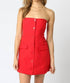 Embrace effortless style with the Giselle Strapless Mini Dress by OLIVACEOUS, perfect for any dinner party or Thanksgiving occasion. This chic red dress, crafted from 100% linen with a rayon lining, features a solid pattern and playful front pocket detail. The strapless, above-the-knee silhouette brings a minimalist touch, while the button closure adds charm. Easy to care for, this dress is machine washable.
