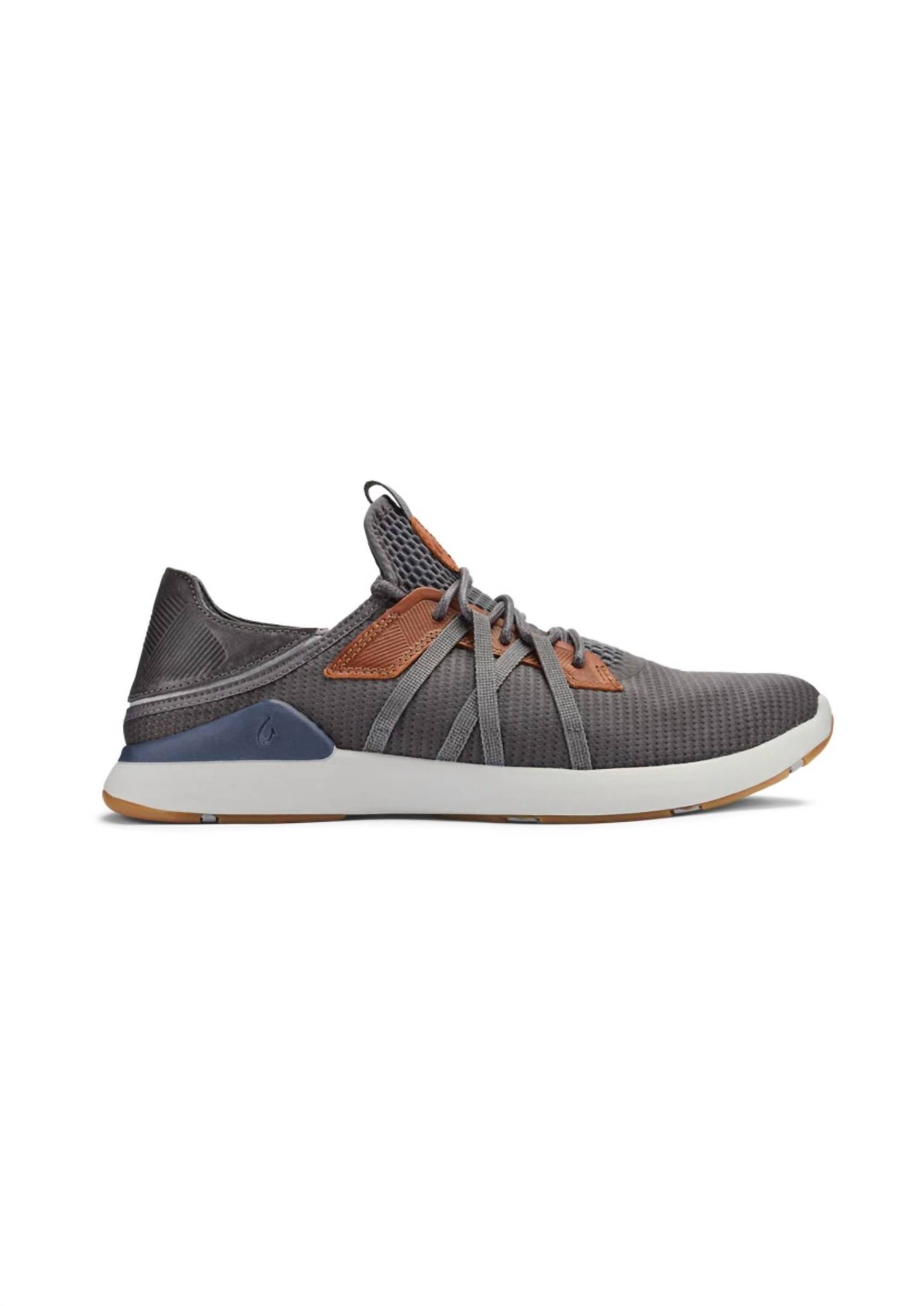 Introducing the Men's Mio Li Everyday Athletic Shoes by OluKai, the perfect choice for an active lifestyle in a stylish Pavement/Vintage Indigo colorway. These shoes feature a breathable mesh outer material and a durable rubber sole, providing exceptional comfort and versatility. Closure: Lace-up, ensuring a secure fit during any activity. Designed for the modern man, they run slightly small, so consider ordering a half size up for the best fit; ideal for fitness and workout sessions.