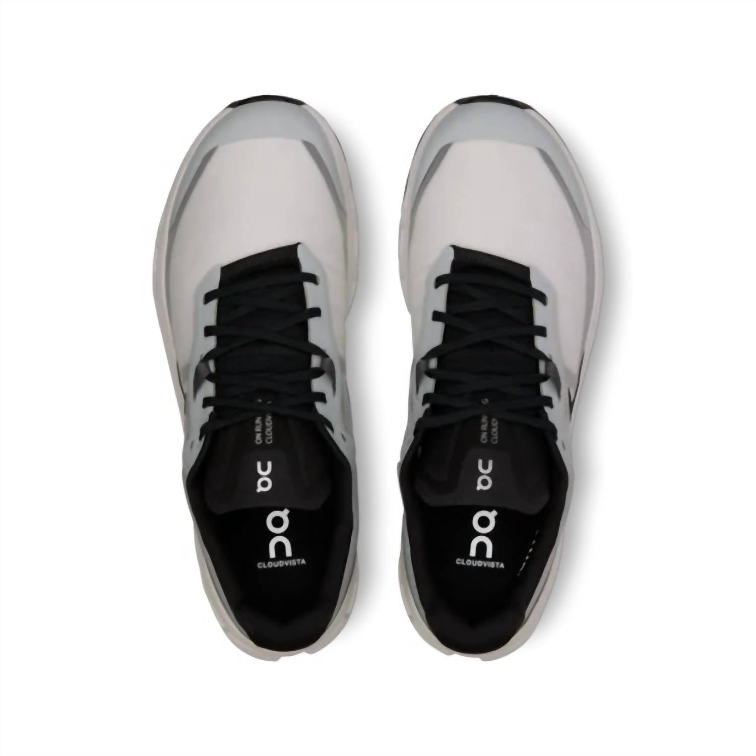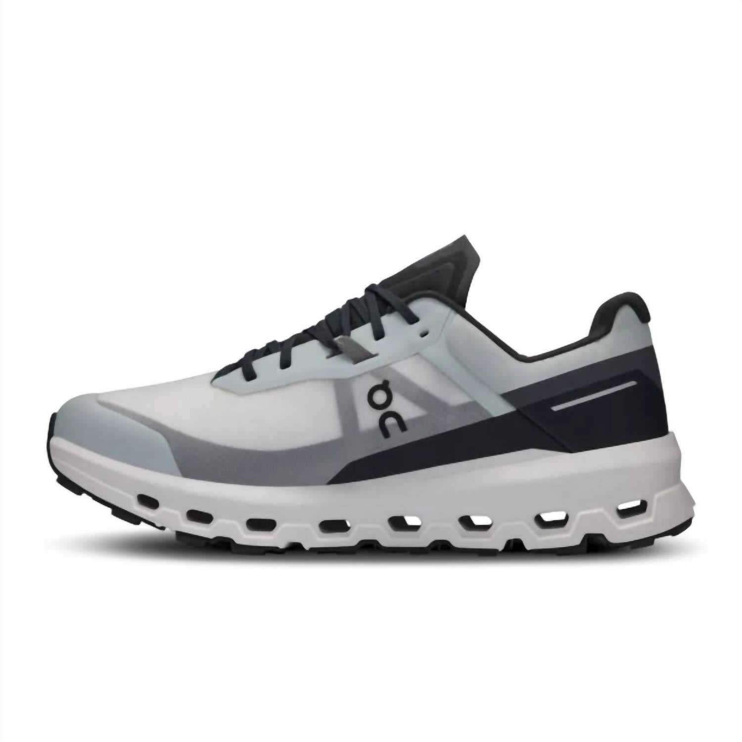 Meet the On Cloud Men's Cloudvista 2 Sneaker in Glacier Eclipse, designed for unparalleled trail running performance. This shoe is re-engineered for exceptional cushioning and comfort, offering a round toe and flat heel for a smooth, faster feel. Ideal for game day and athleisure trends, this pair elevates your spring adventures with ease. Perfect for women seeking a blend of function and style in their trail gear.