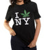 Crafted with lightweight French terry, this black top offers a refined and softer touch thanks to its unique loopback construction. It features a graphic "I leaf NY" embroidery, perfect for warm weather, and comes in a classic crewneck style with short sleeves. Pull-on.