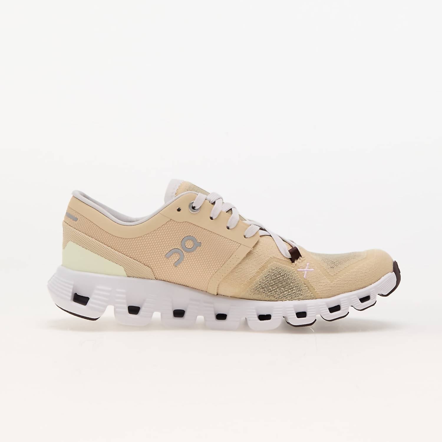 Stylish, comfortable and supportive. These athletic sneakers check all of the boxes. Experience unparalleled performance with the Women's Cloud X 3 Running Shoes by On, available in a stylish Savannah/Frost color. These shoes are crafted with a 3-layer mesh for breathability and feature a wider platform for enhanced stability and support. The innovative Speedboard® technology ensures powerful take-offs, while the molded heel cap adds additional support. Originating from Vietnam, these athletic shoes are designed for fitness and workout occasions, with an 8mm heel-to-toe drop and medium width for a comfortable fit.