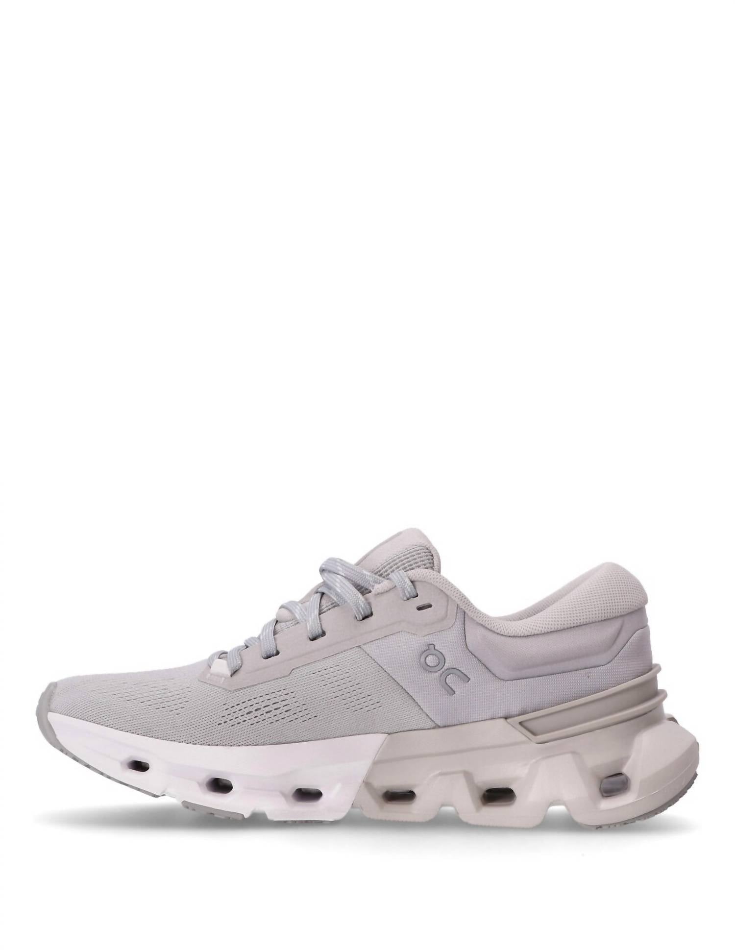 Stylish, comfortable and supportive. These athletic sneakers check all of the boxes. Experience premium comfort with the Women's Cloudflyer 5 Running Shoes by On, engineered in Glacier/Wolf for your athleisure needs. Crafted with a dual-density Helion™ midsole, these shoes offer softer landings and impressive impact absorption. The molded heel counter and plush padded ankle collar ensure a stable, cushioned ride, with a wide platform providing additional stability. Weighing 275g, these athletic shoes feature a medium width and a 9mm heel-to-toe drop, tailored for spring fitness and workouts.