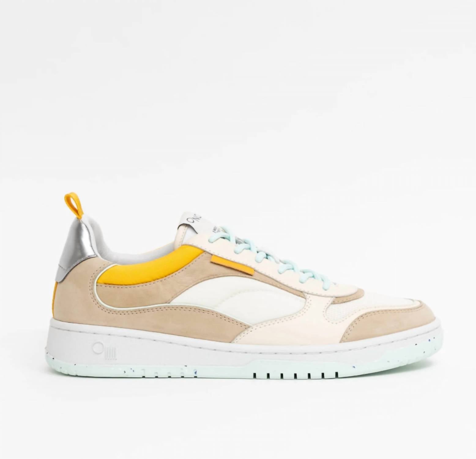 The Porto Sneaker by Oncept is the perfect blend of style and comfort for women. This sneaker in ivory features a leather upper with chrome-free suede trim, complemented by a Tencel twill lining and leather sock. The design includes a closed round toe and flat heel with speckled bottoms, ensuring true-to-size fit with a lace-up closure. Ideal for everyday wear, these sneakers offer both elegance and practicality.