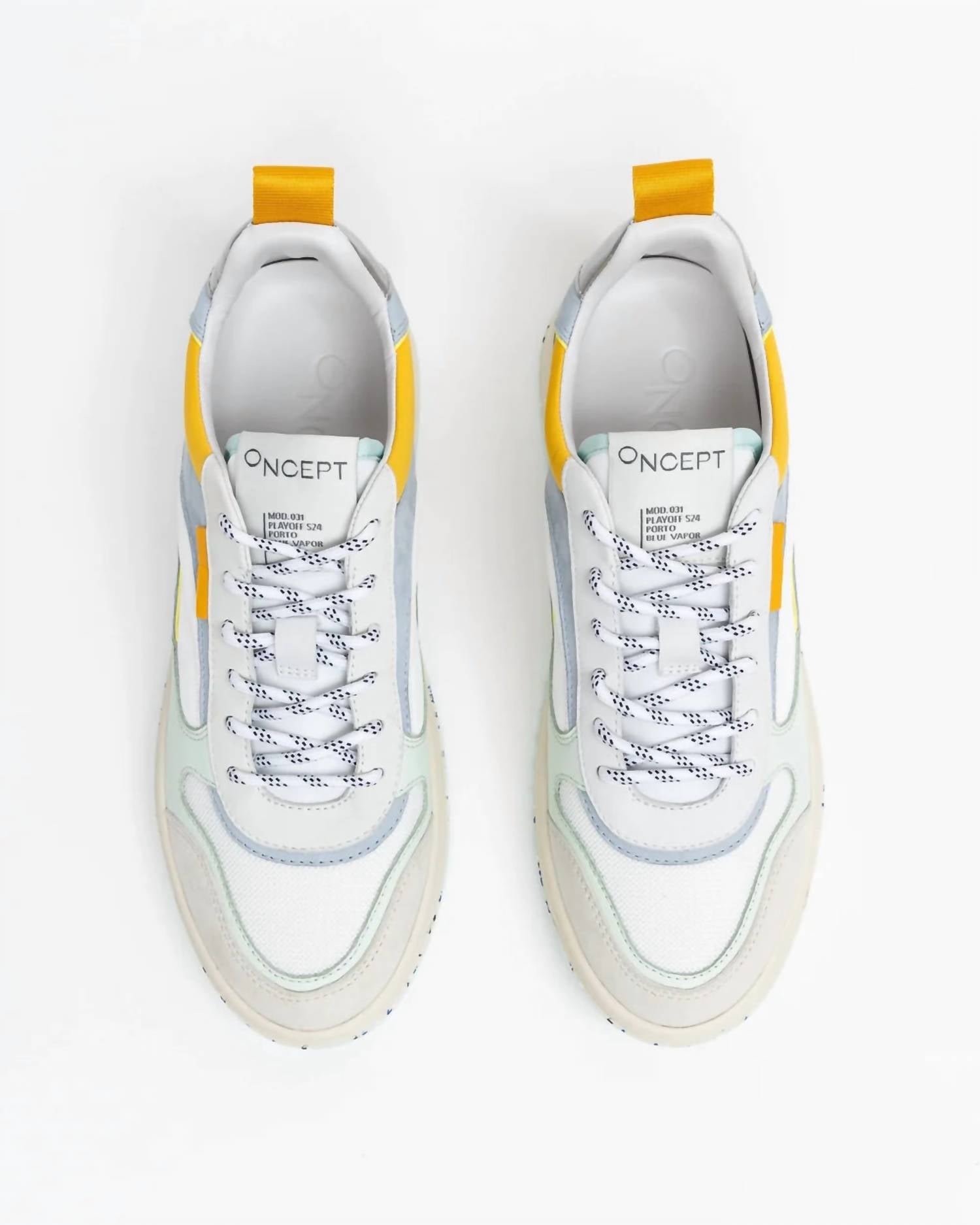 When fashion and function come together seamlessly. Introducing the Women's Porto Sneaker by Oncept in Blue Vapor, a contemporary take on classic silhouettes that embraces innovation. Crafted with a premium blend of materials including LWG-rated leather and Galactic recycled mesh, this sneaker offers both sustainable style and ultimate comfort. Featuring a signature Re[Speckled rubber outsole, it embodies streetwear trends perfect for spring travel. Designed with a flat heel under 1 inch and a round toe shape, the Porto Sneaker delivers on conscious fashion and everyday versatility.