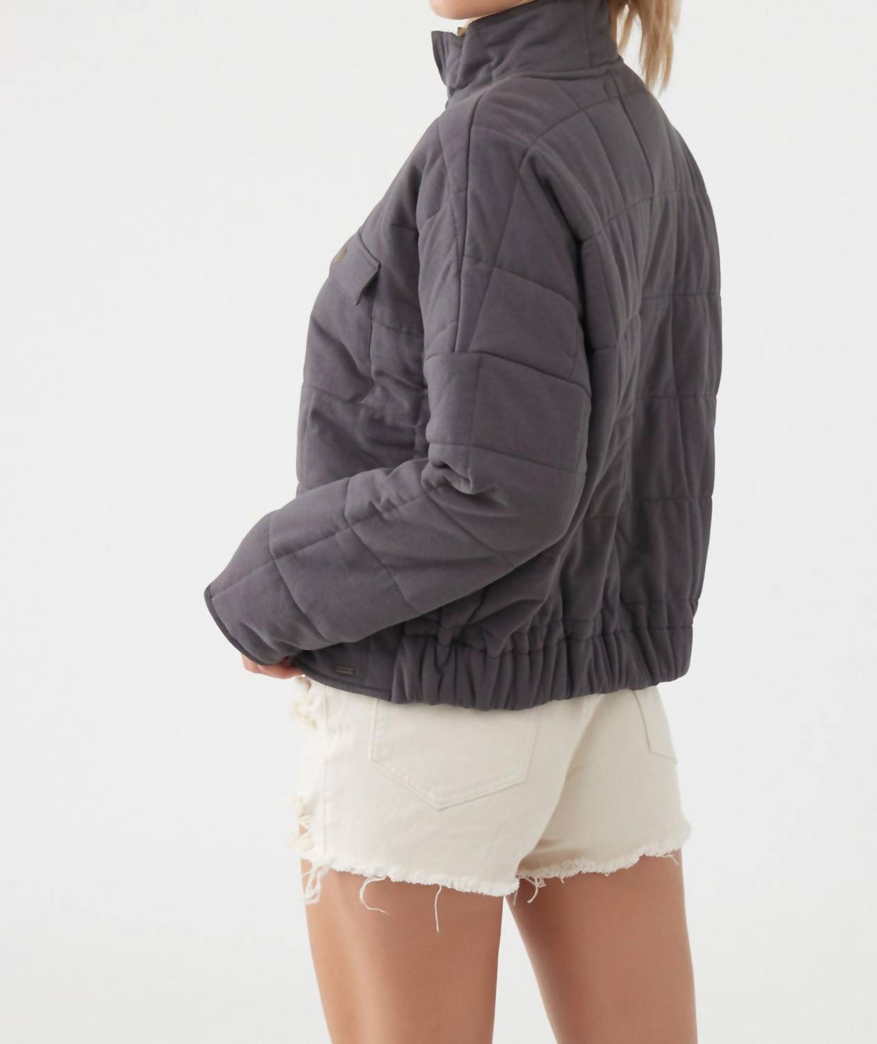 Deixe qualquer look instantaneamente descolado combinando-o com esta jaqueta bomber. Abrace o calor e o estilo com a Jaqueta Pulôver Acolchoada Mable da O'Neill, a companheira perfeita para suas aventuras de viagem neste outono. Esta jaqueta bomber feminina na cor Cinza Escuro lisa apresenta mangas longas e um corte folgado, proporcionando um toque acolchoado macio. Confeccionada em 100% algodão, possui um prático fecho de meio zíper e práticos bolsos laterais com bainha elástica na parte traseira para maior conforto. Fácil de cuidar, basta lavar na máquina e secar na secadora para manter seu visual elegante. Com 63 cm de comprimento, esta jaqueta é ideal para usar em camadas, mantendo um estilo chique sem esforço.