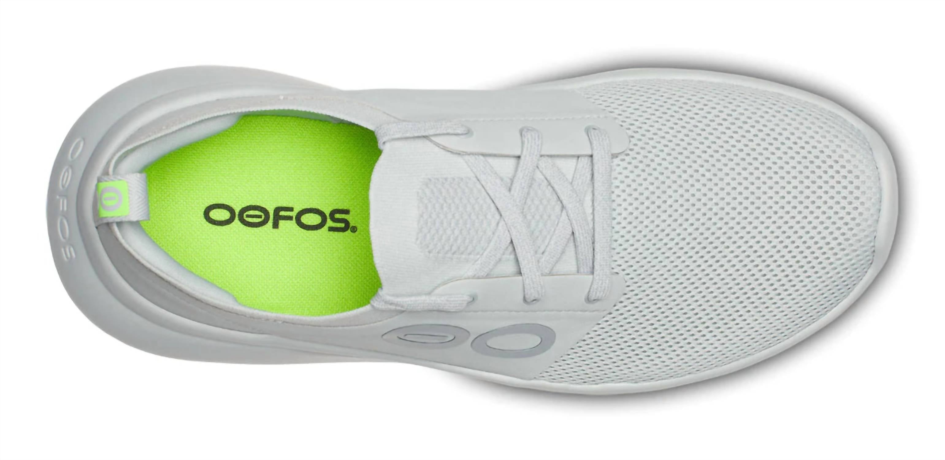 Quando moda e funcionalidade se unem perfeitamente. Entre em sintonia com o tênis masculino Stride da OOFOS na cor Glacier, perfeito para as férias de verão. Projetado com cabedal respirável e elástico em 4 direções e amortecimento no calcanhar, este tênis proporciona excelente mobilidade e suporte para o tendão de Aquiles. Com colarinho e cadarço em malha projetada para um ajuste perfeito e refinado, a palmilha antimicrobiana garante frescor. A tecnologia OOfoam™ sob o calcanhar arredondado melhora a absorção de impacto, enquanto sulcos flexíveis mais profundos oferecem maior tração e durabilidade, tudo em um estilo minimalista com salto baixo e plano.